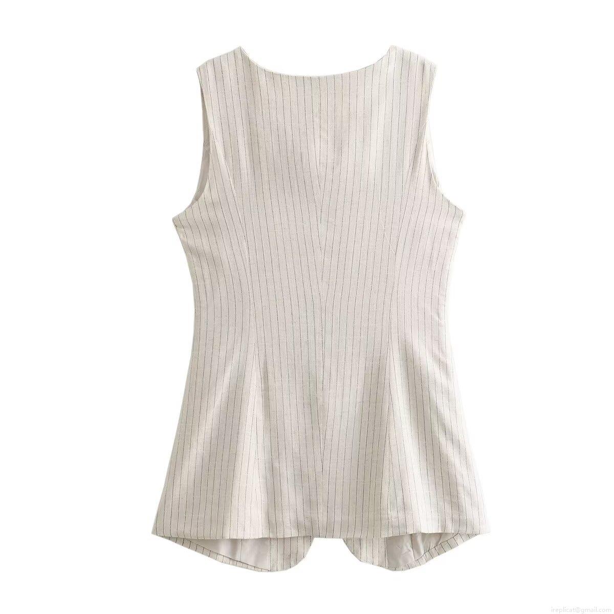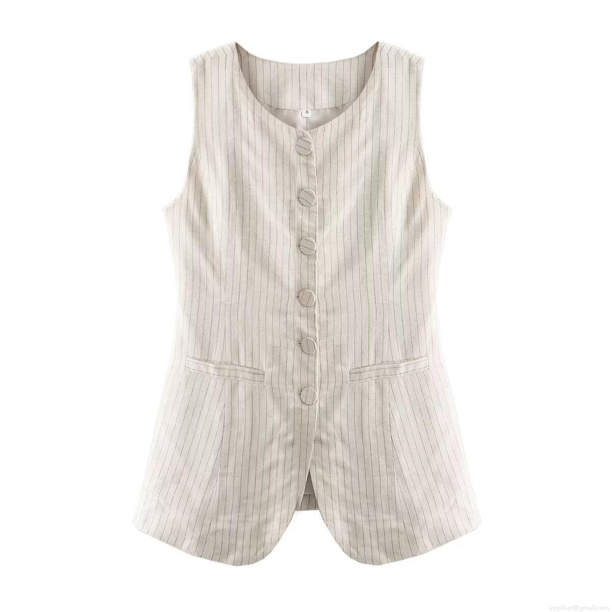 • Women's Vintage Striped Slim Fit Vest Single Breasted Linen Blend Sleeveless Waistcoat Casual Office Summer Streetwear Fashion Top For Ladies