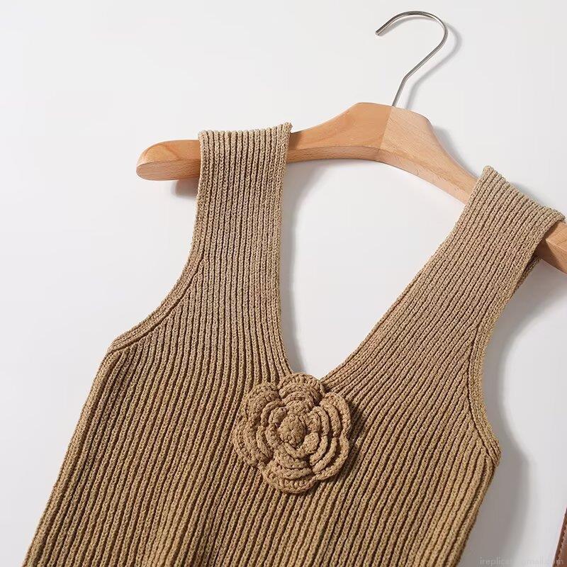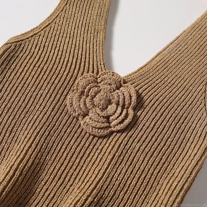 3d Flowers, Rose, V-neck, Sleeveless, Ribbed Knit, 3d Crochet
