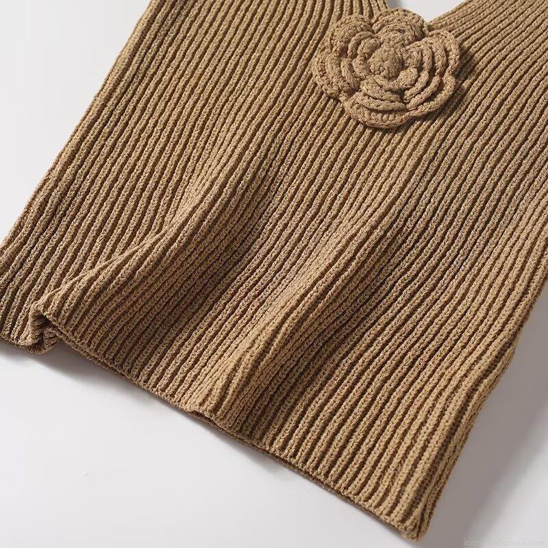 • Women's V-Neck Knitted Tank Top With 3D Crochet Rose Flowers Sleeveless Acrylic Nylon Ribbed Knit Vest Summer Casual Sweet Camisole For Women
