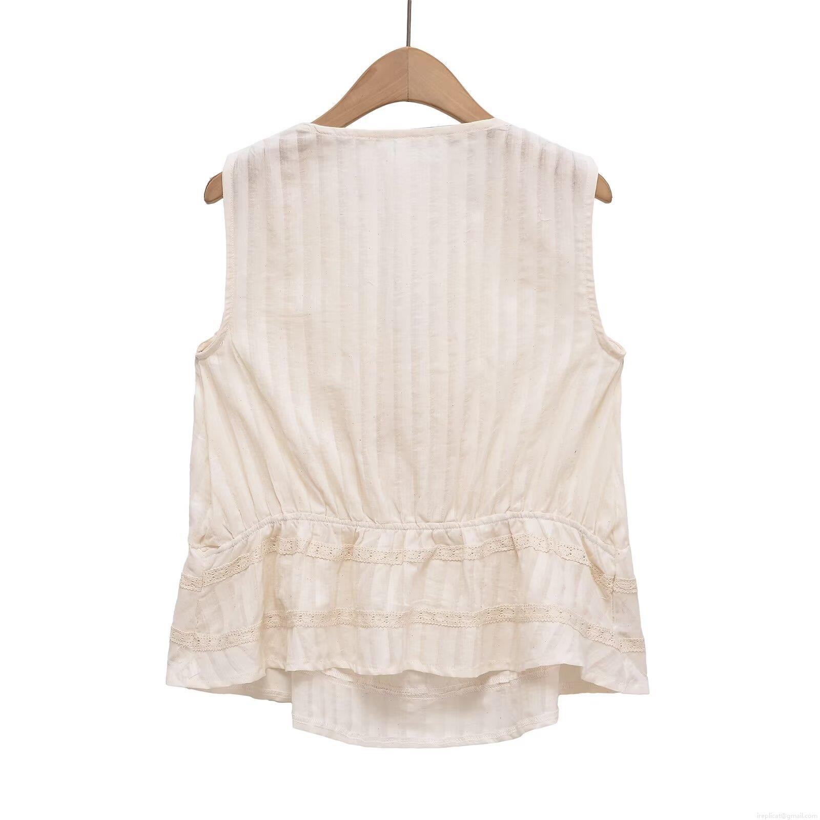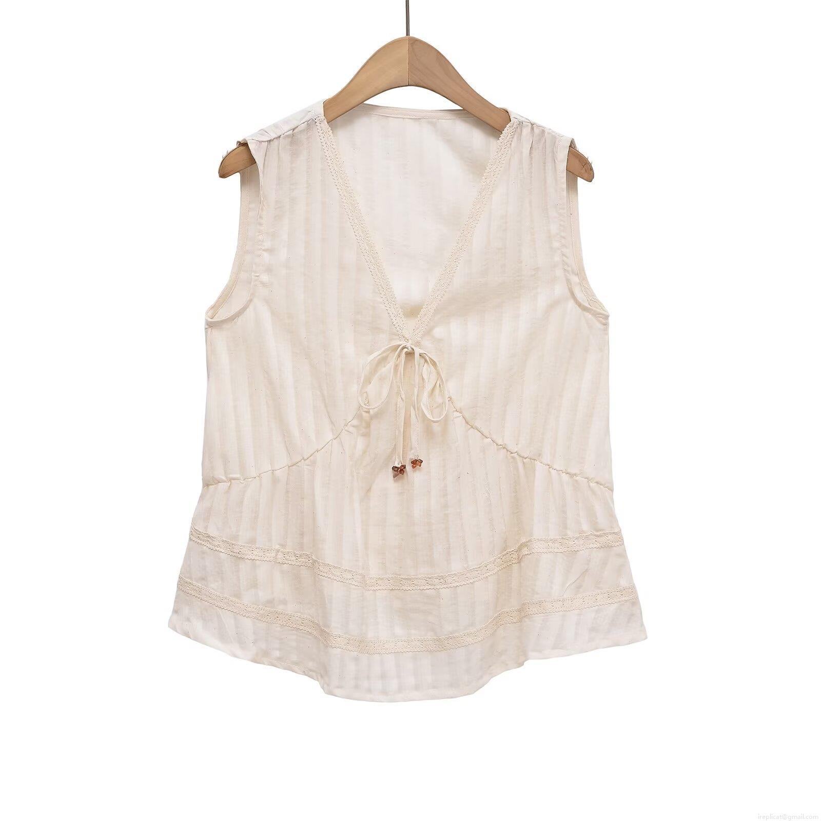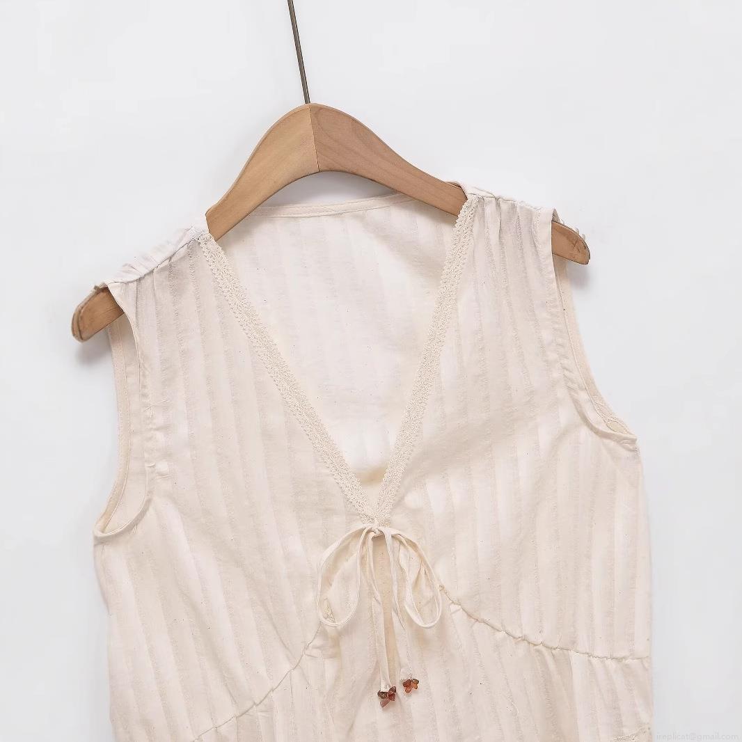 • Women's V-Neck Sleeveless Tank Top Polyester Cotton Blend Lace Drawstring Tie Front Vertical Striped Ruffle Hem Elegant Socialite Style Summer Camisole Shirt