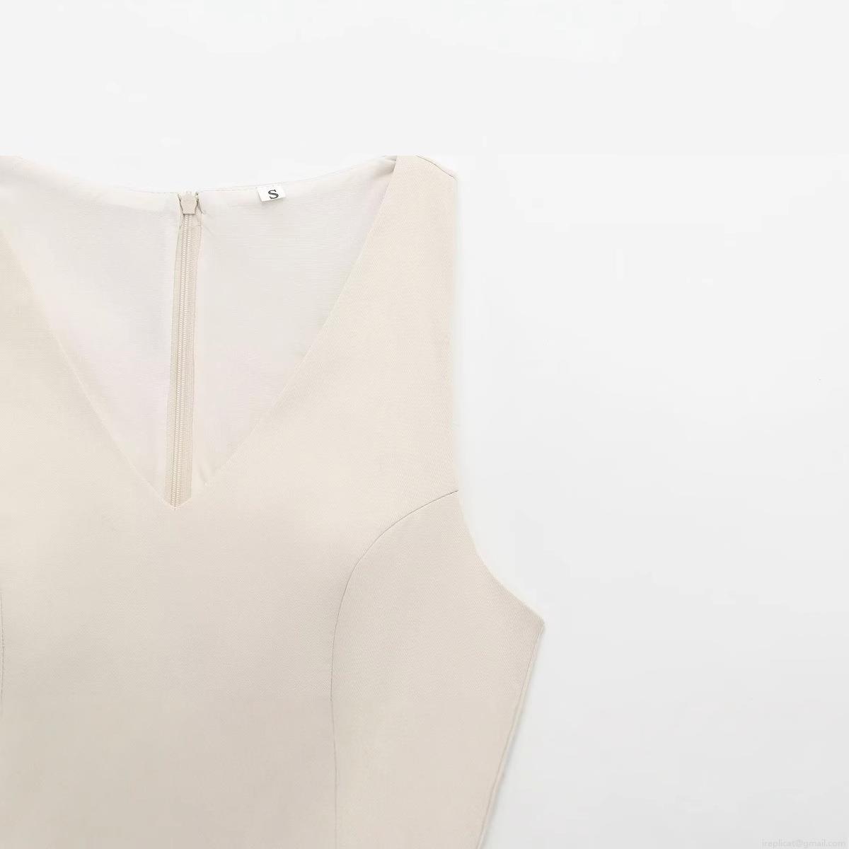 Solid Color, V-neck, Pocket Decoration, Invisible Zipper, Waist-cinching And Swaying