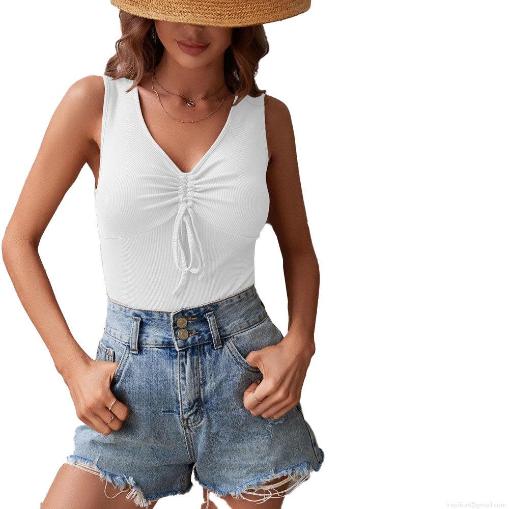 • Women's V-Neck Tank Top Sexy Ruched Slim Fit Sleeveless Ribbed Knit Viscose Blend Summer Casual Office Vacation Elegant Top for Women