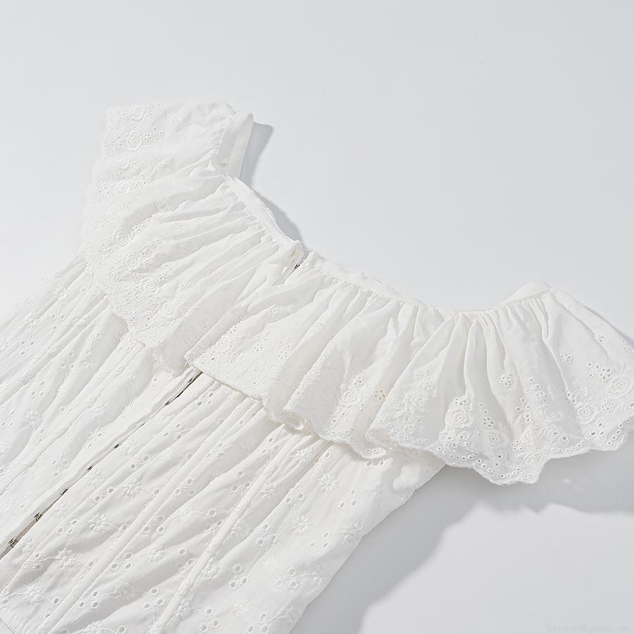 Embroidery, Hollow Out, Ruffles, Flowers, Lace, Off-shoulder, Fishbone Design