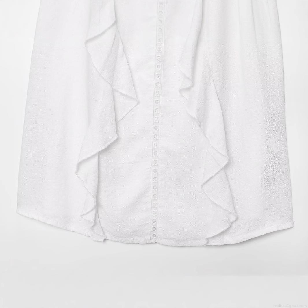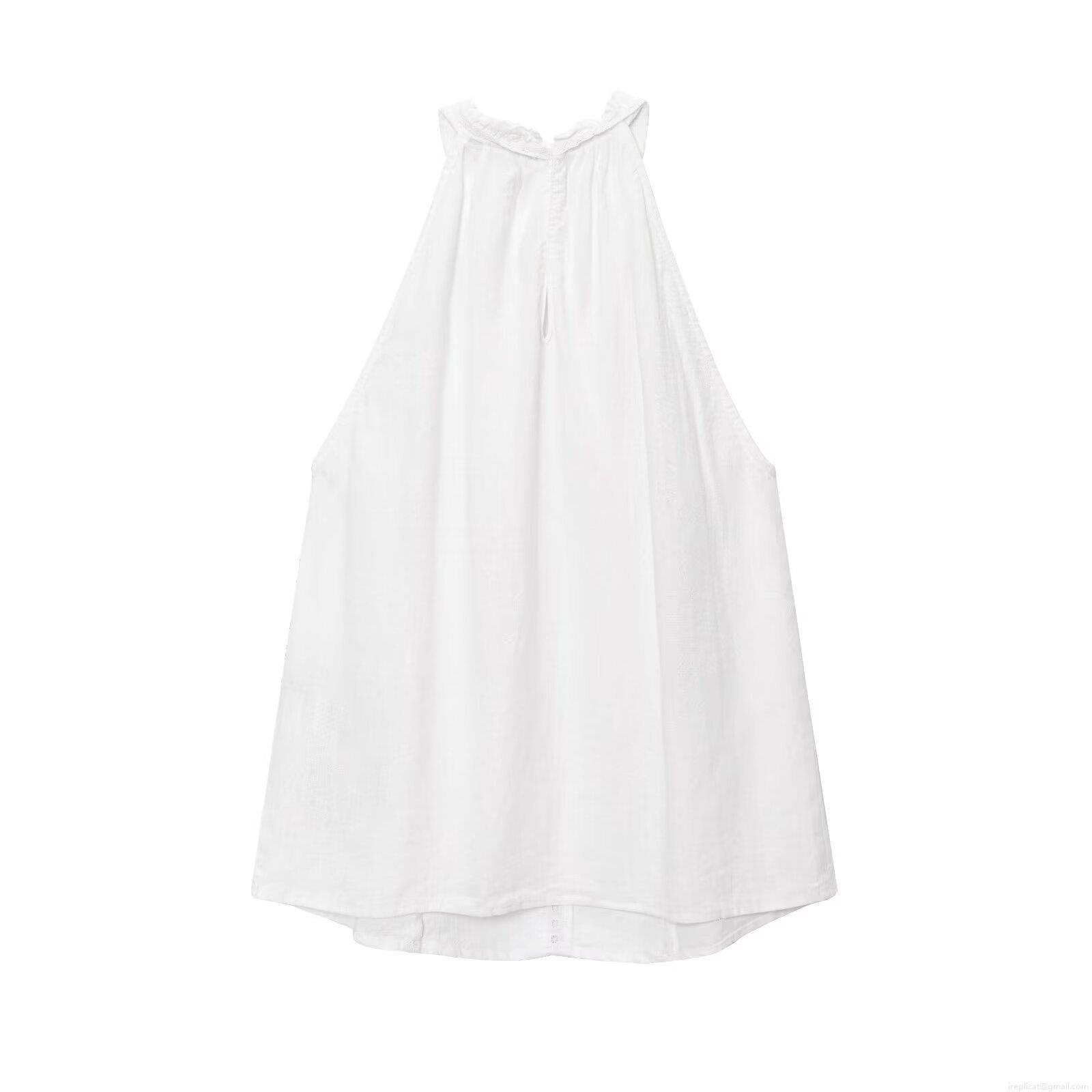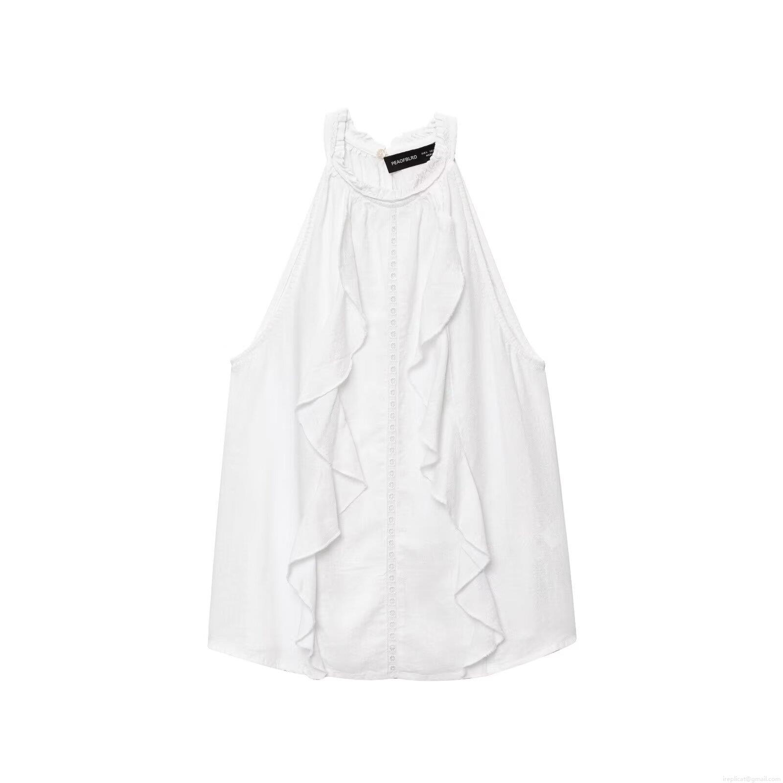 • Women's White Linen Blend Halter Top Sleeveless Ruffle Blouse With Hollow Out Embroidery Layered Tank Top For Summer Vacation Daily Sweet Style