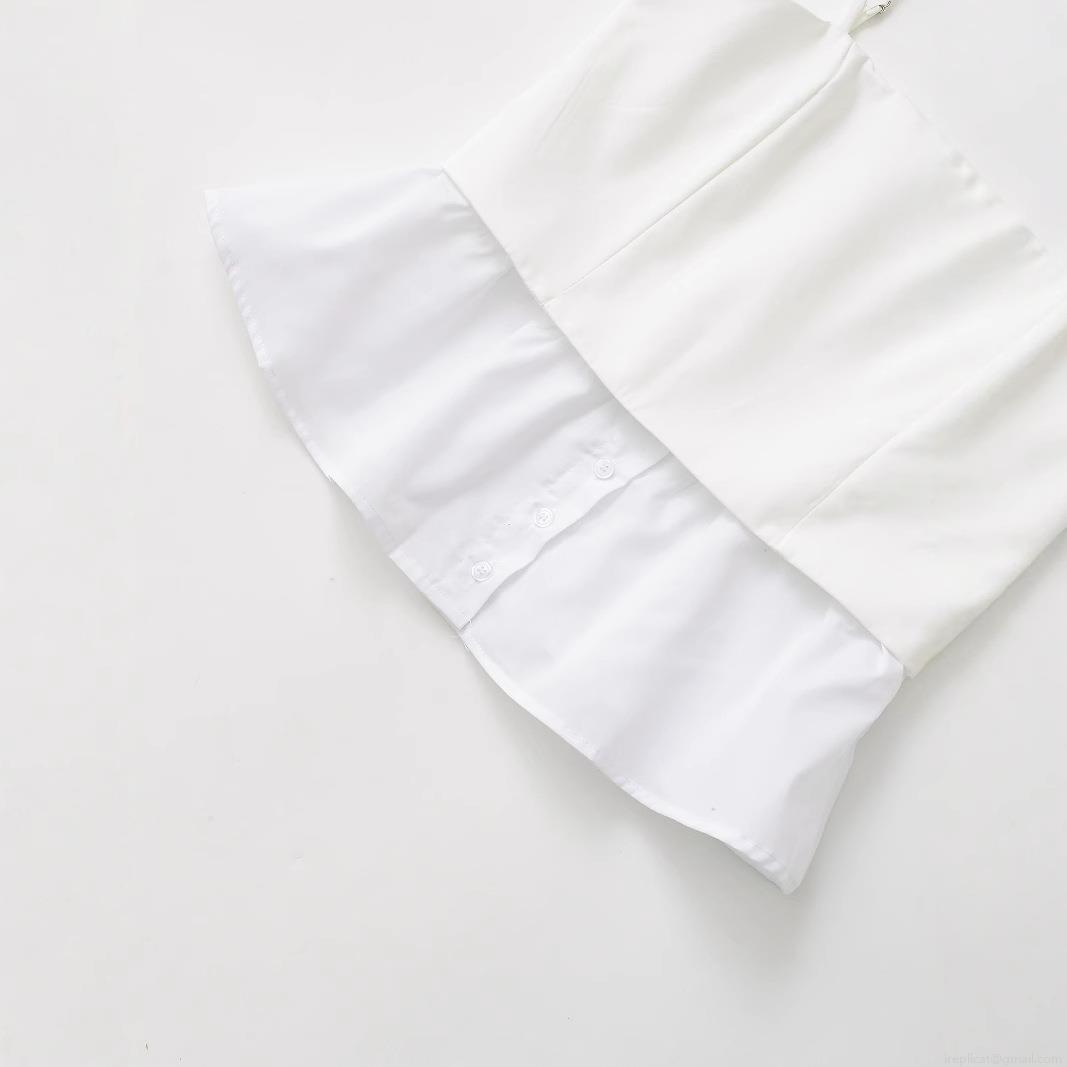 Solid Color, Splice, Pleats, Ruffles, Button Decoration, Peplum