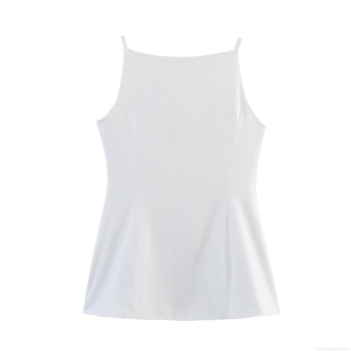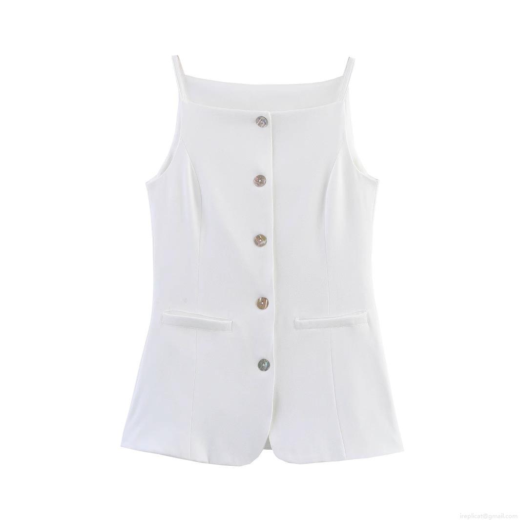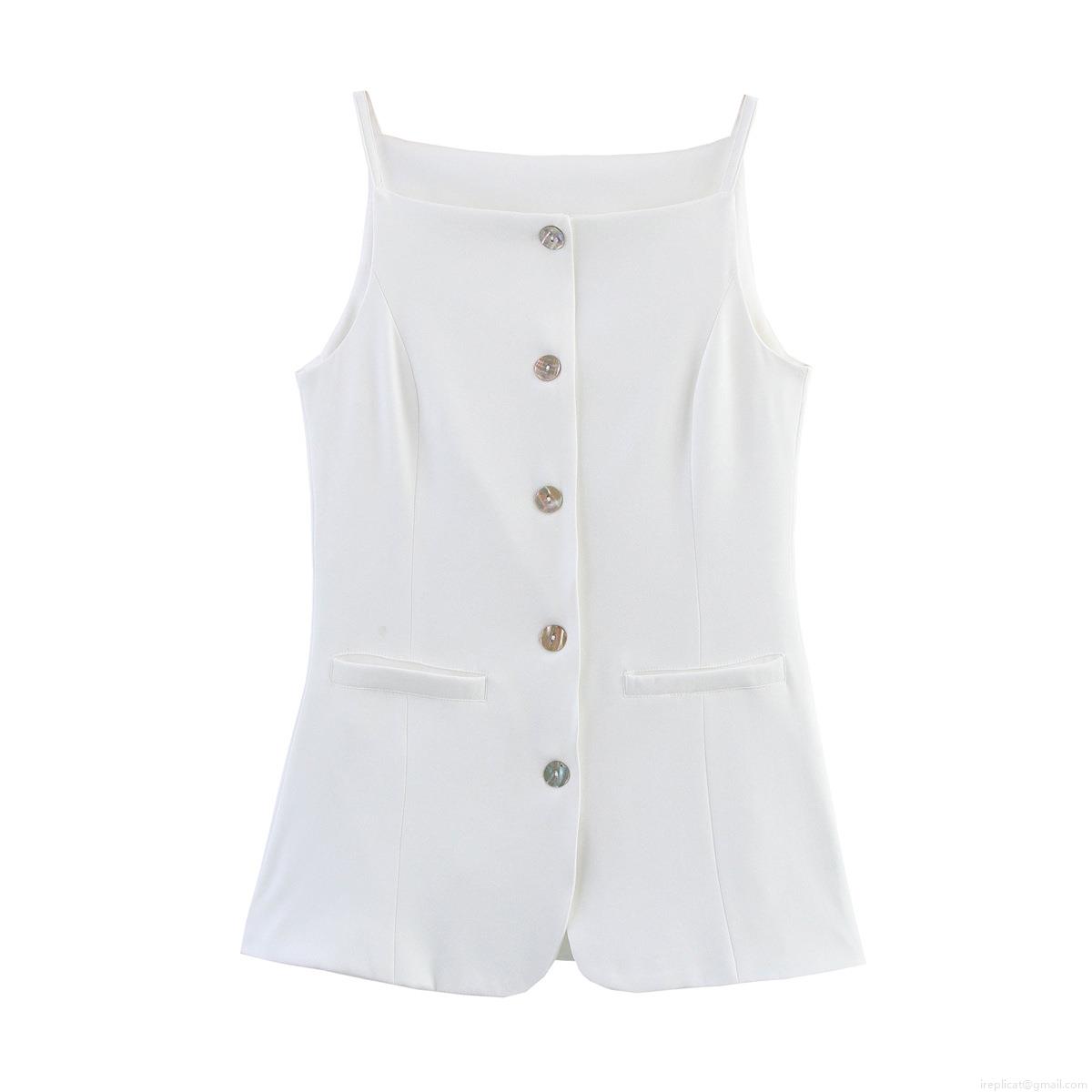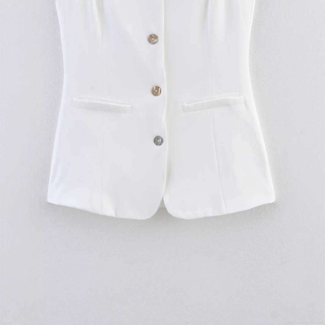• Women's White Square Neck Suit Vest Camisole Single Breasted Slim Fit Polyester Sleeveless Tank Top For Daily Commuting Office Party