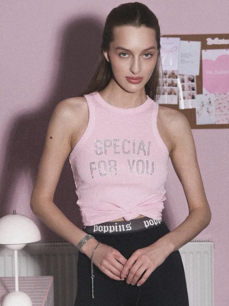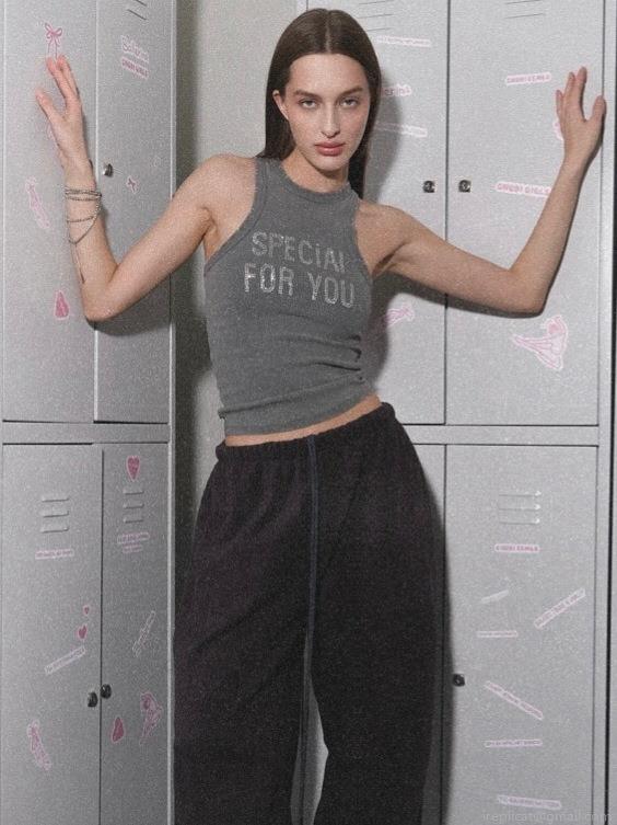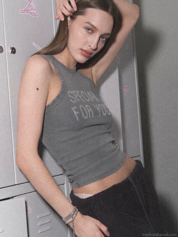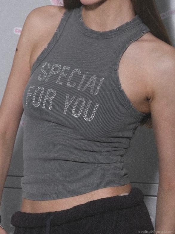 • Women's Y2K Cotton Spandex Ribbed Tank Top With Crystal Rhinestone Letters Distressed Slim Fit Sleeveless Vest Streetwear Casual Top