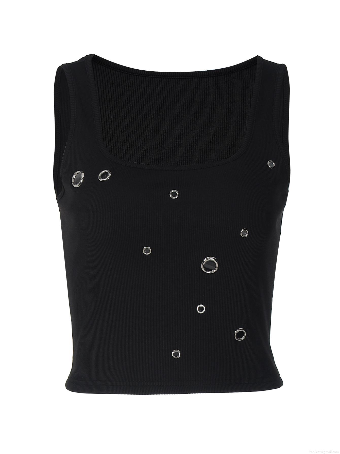 • Women's Y2K Punk Ribbed Tank Top Metal Grommet Eyelet Sleeveless Crop Top Slim Fit Streetwear Ribbed Vest Black