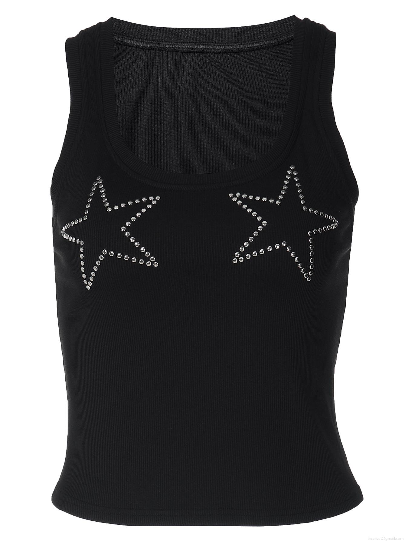 • Women's Y2K Ribbed Rhinestone Star Tank Top 95% Polyester 5% Spandex Sleeveless Slim Fit Crop Top Streetwear Camisole For Summer Party
