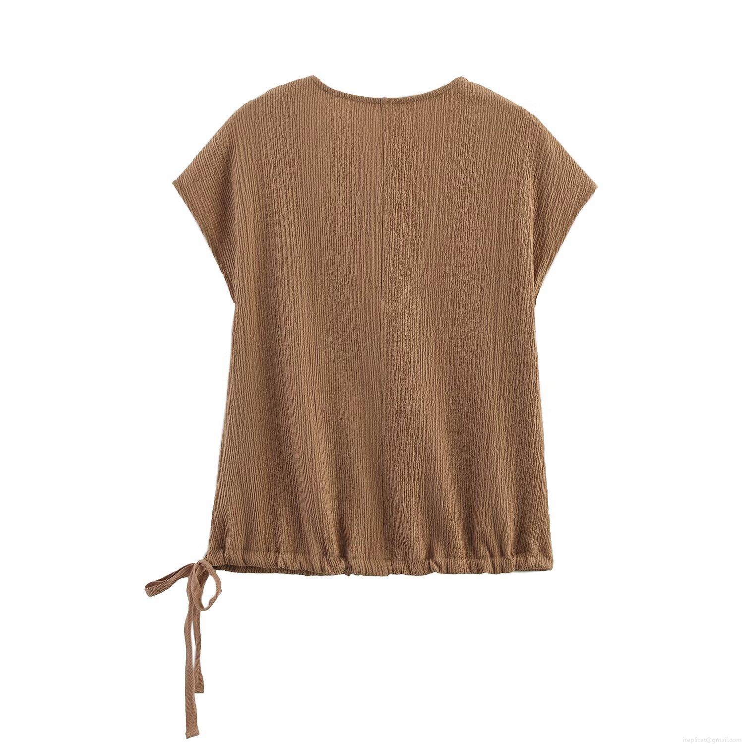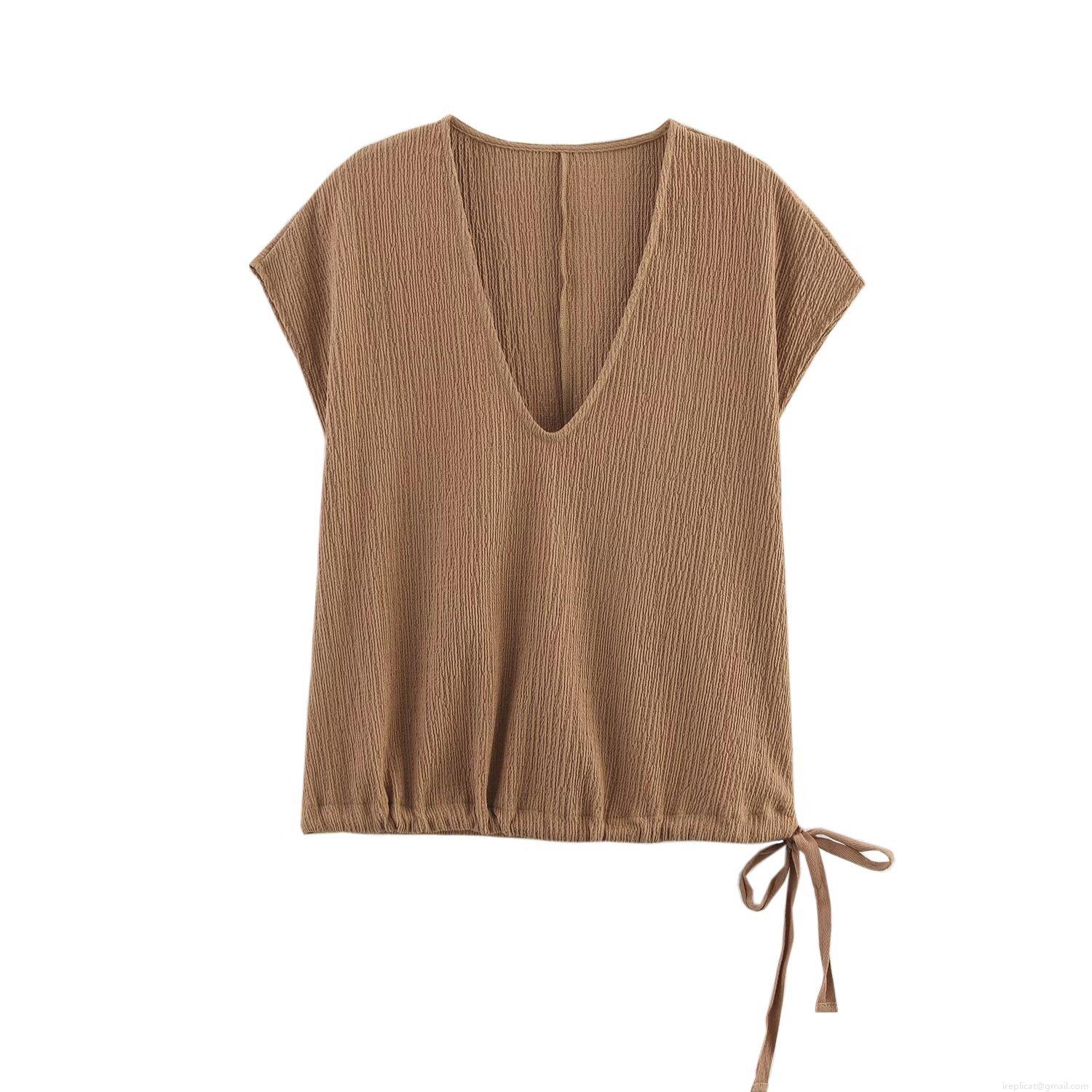 • Women's Textured V-Neck Short Sleeve Top and Multi-Pocket Cargo Pants 2-Piece Outfit Solid Color Streetwear Casual Set for Spring Autumn
