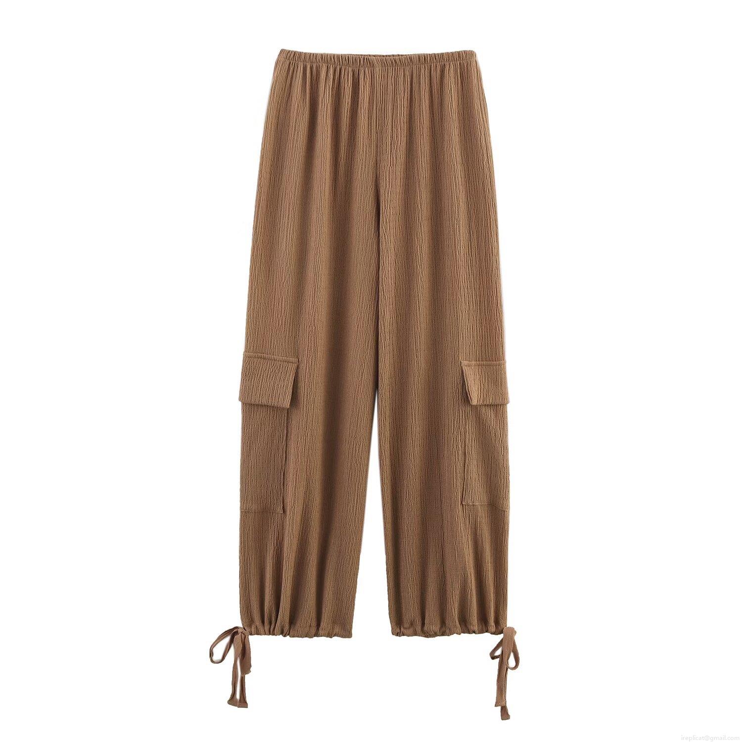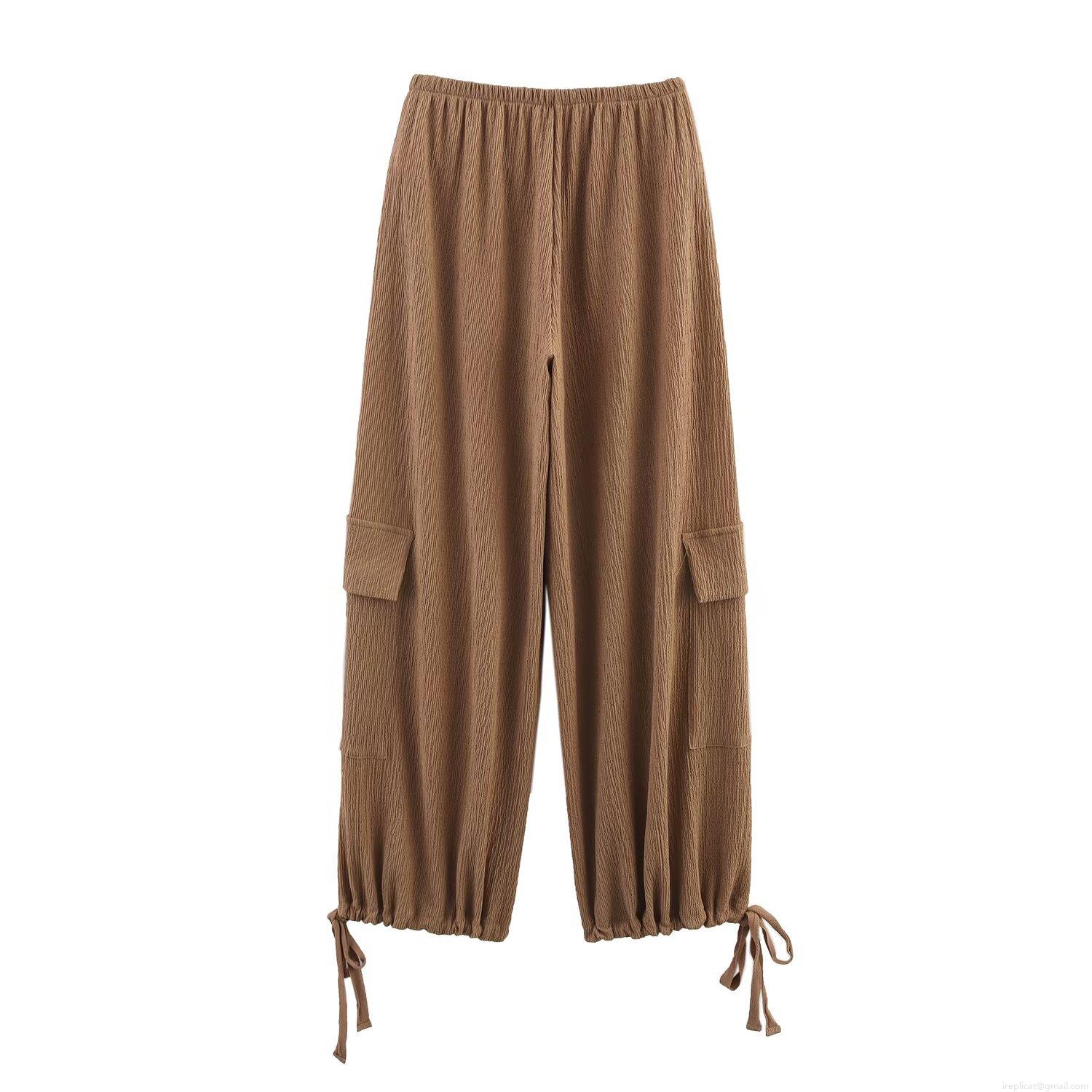 Solid Color, Drawstring, Wrinkled Texture, Work Pockets