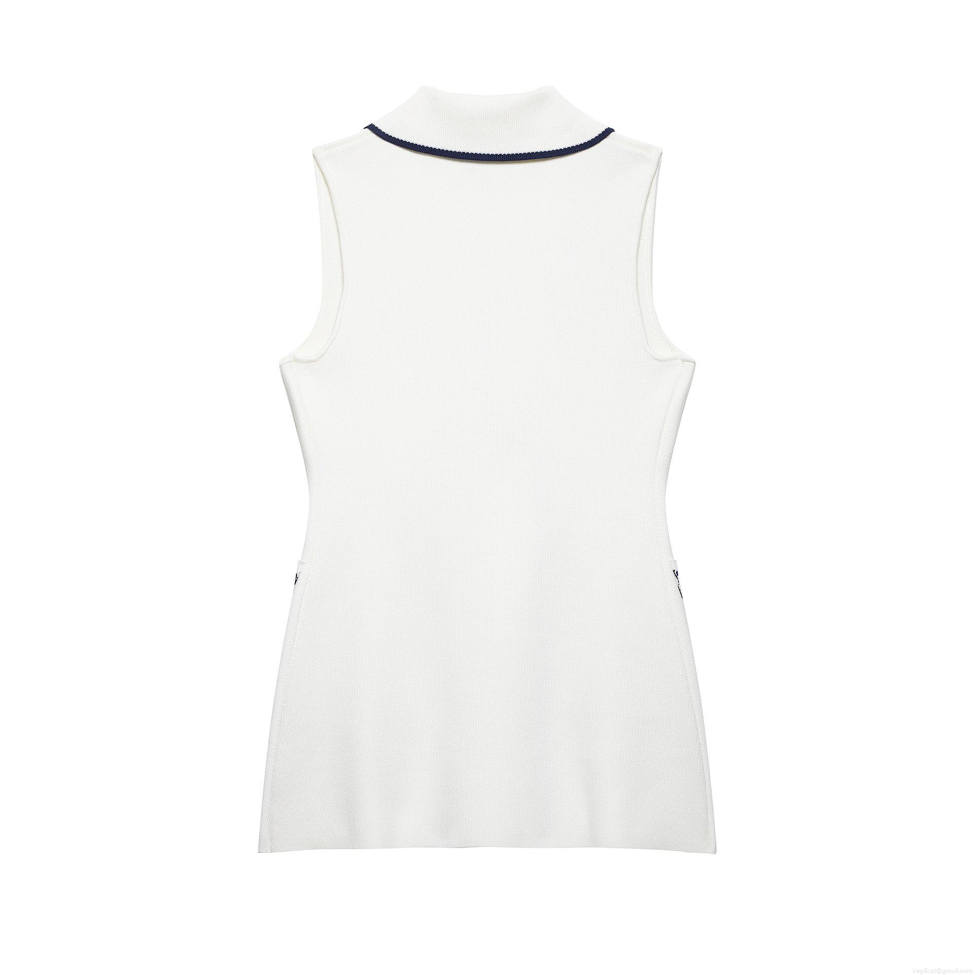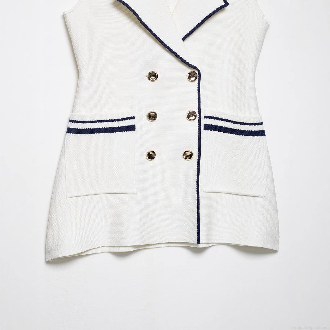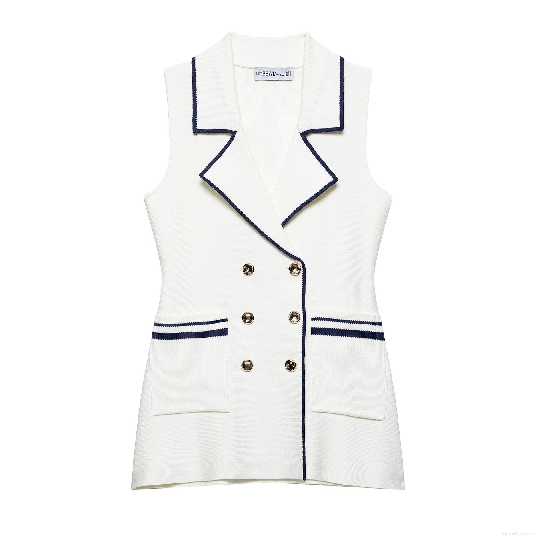 Elegant Knitted Vest For Women Contrast Trim Double Breasted Gold Buttons Sleeveless Waistcoat Preppy Style Office Wear Knit Top Cardigan