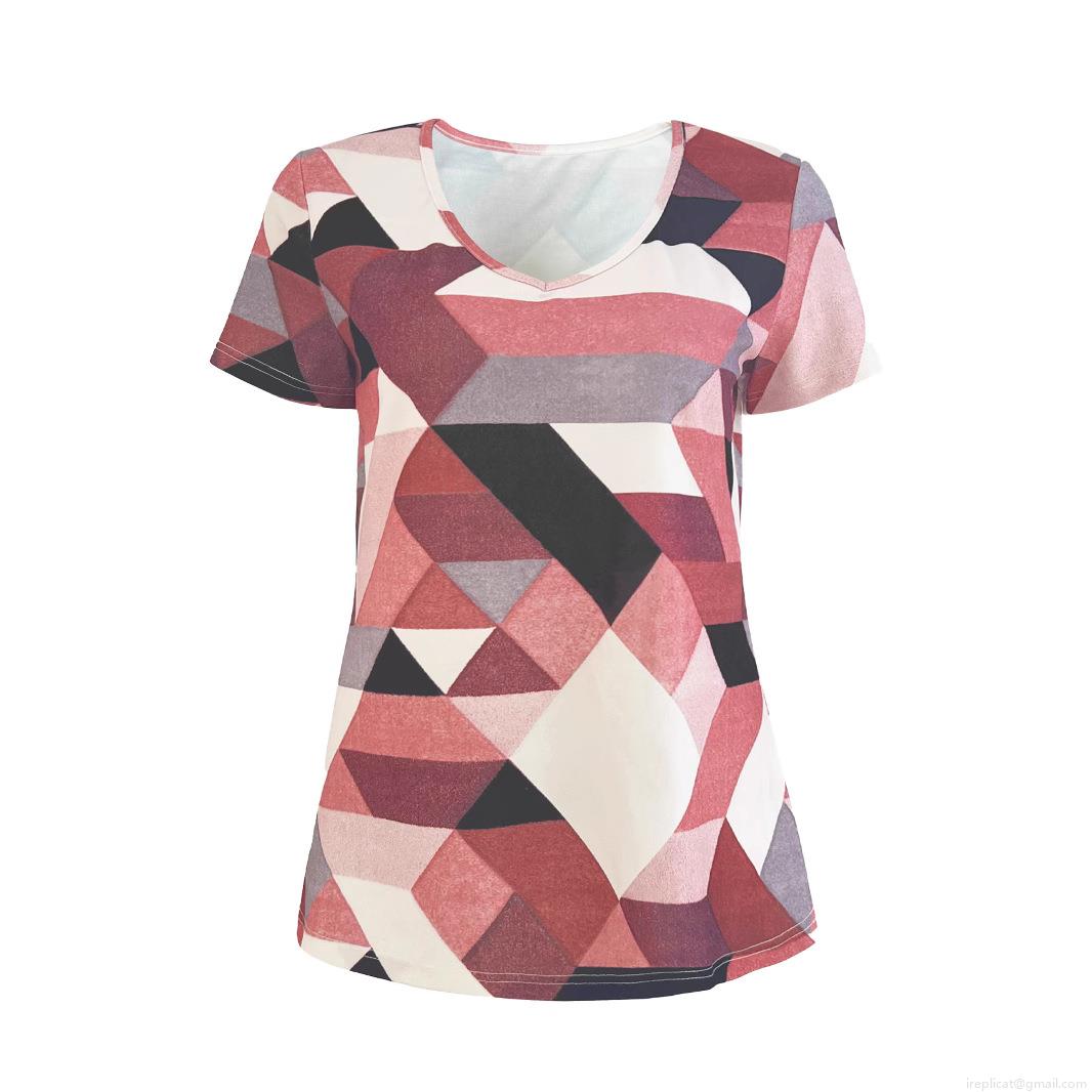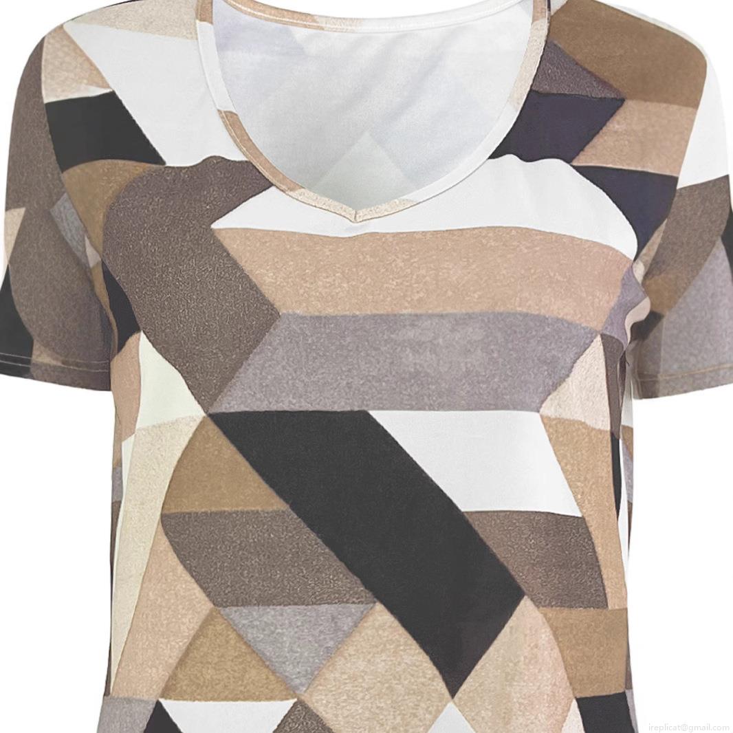 • Plus Size Women's T-Shirt Geometric Digital Print V-Neck Short Sleeve Top Loose Casual Polyester Spandex Blend Tee For Summer Daily Wear