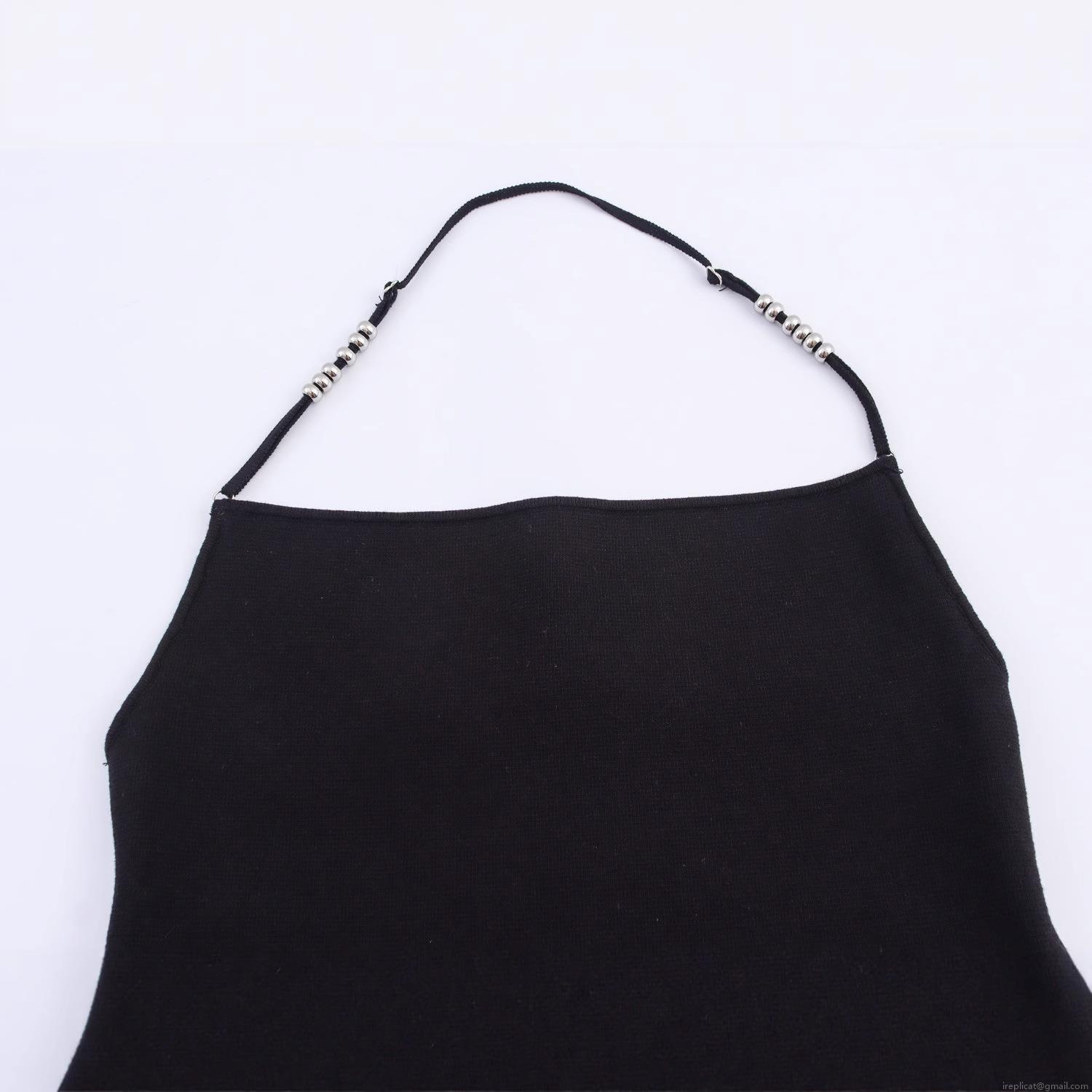 Sexy Halter Neck Knitted Tank Top With Silver Metal Beads Backless Slim Fit Side Slit Sleeveless Camisole For Women Party Clubwear Solid Black Knit Top