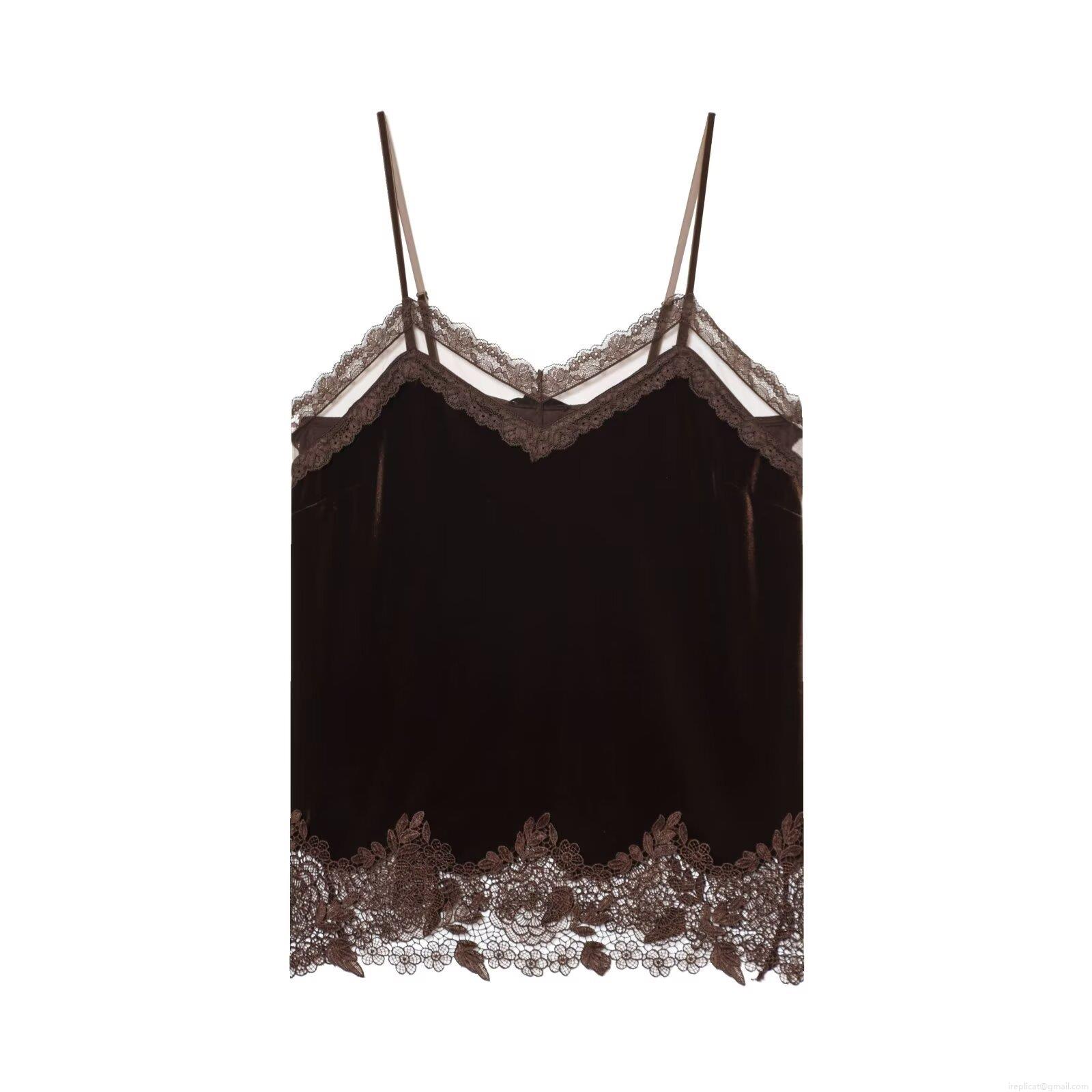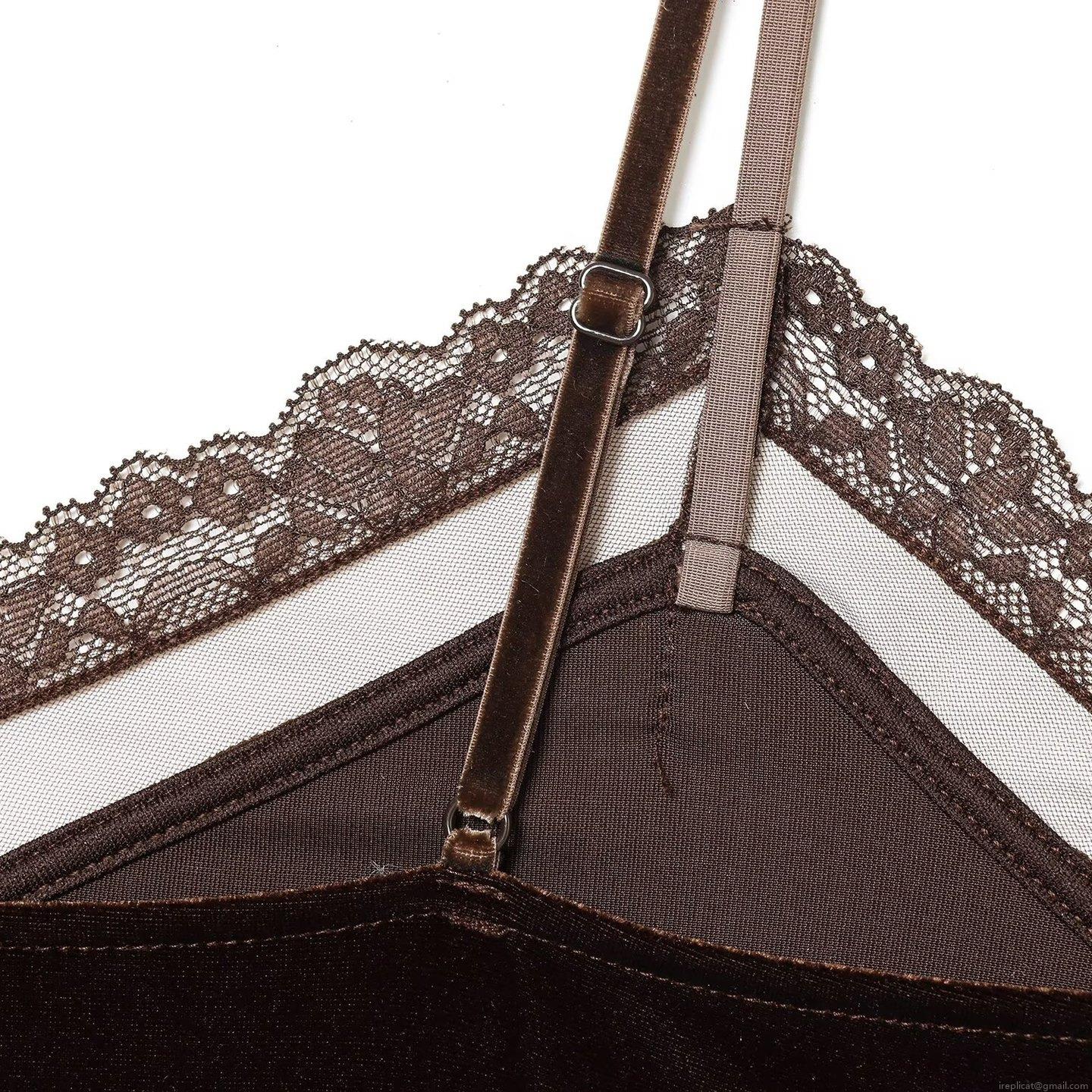 • Sexy Velvet Lace Trim Camisole Top V Neck Adjustable Straps Polyester Spandex Sleeveless Vest For Dating Party Night Out Women Fashion Chic Inner Wear