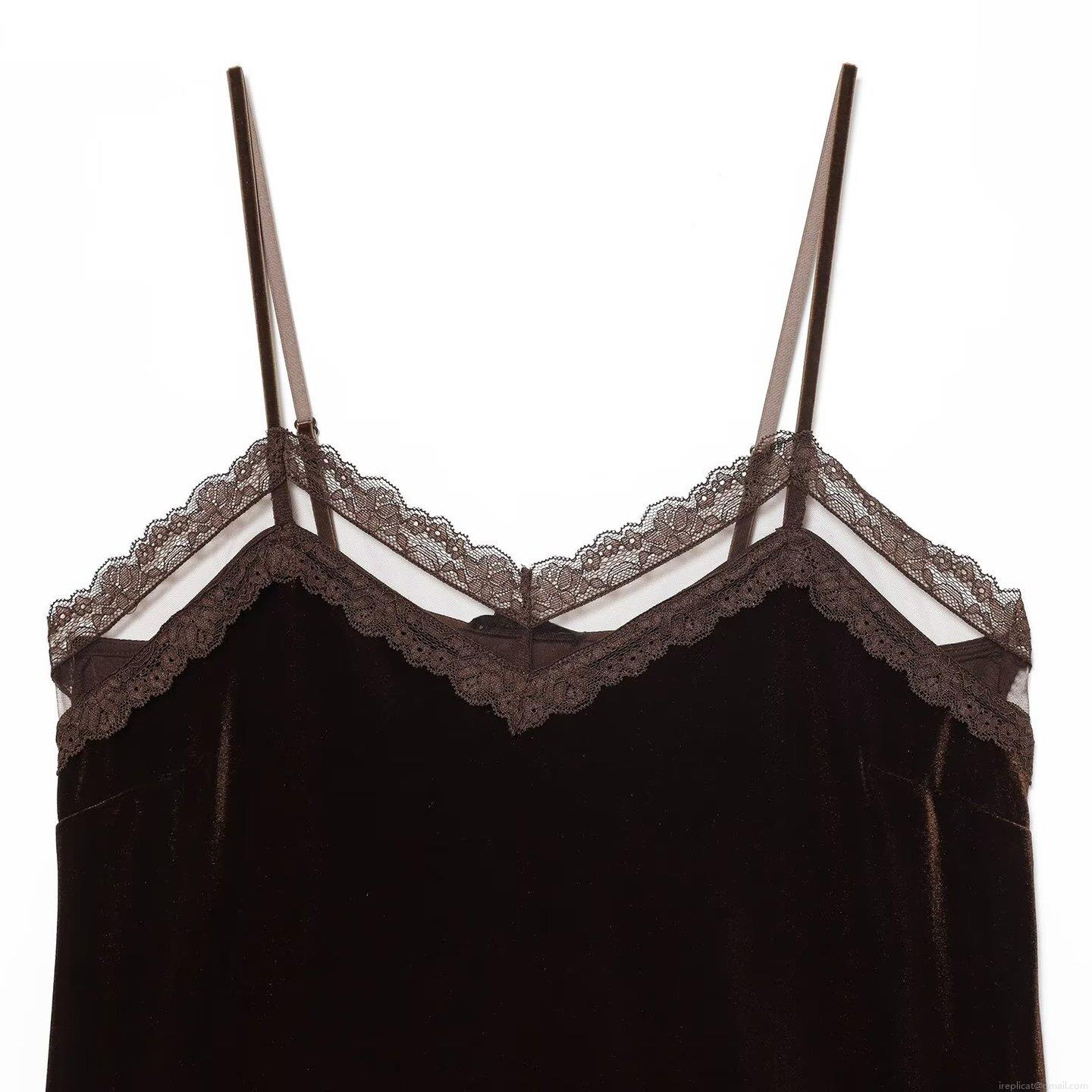 Solid Color, Velvet, Lace Trim, V-neck, Thin Straps
