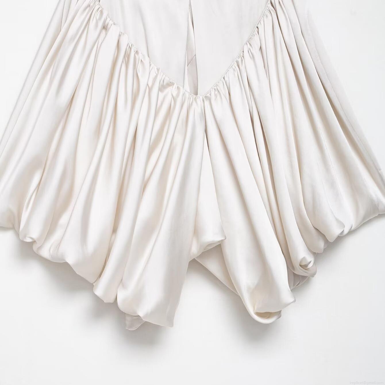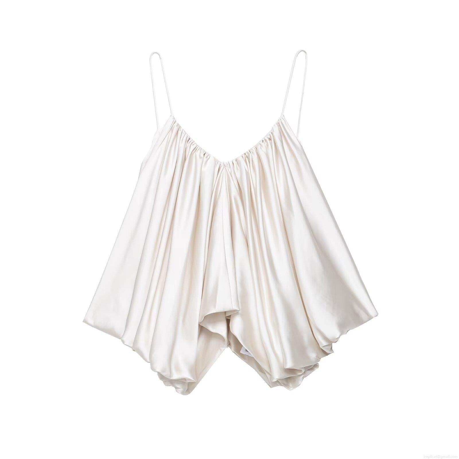 • Sexy Women Satin Camisole Top With Pleated Ruffle Bubble Hem Backless V Neck Thin Straps Sleeveless Summer Party Elegant Solid Color Blouse