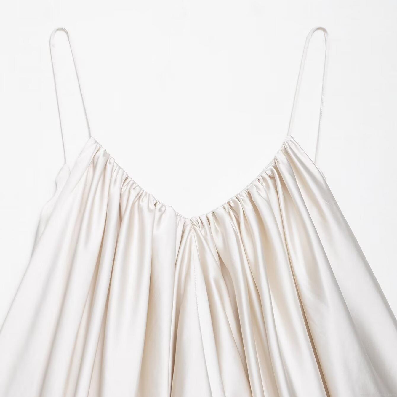 Solid Color, Pleats, Backless, Thin Straps, Bubble Swing