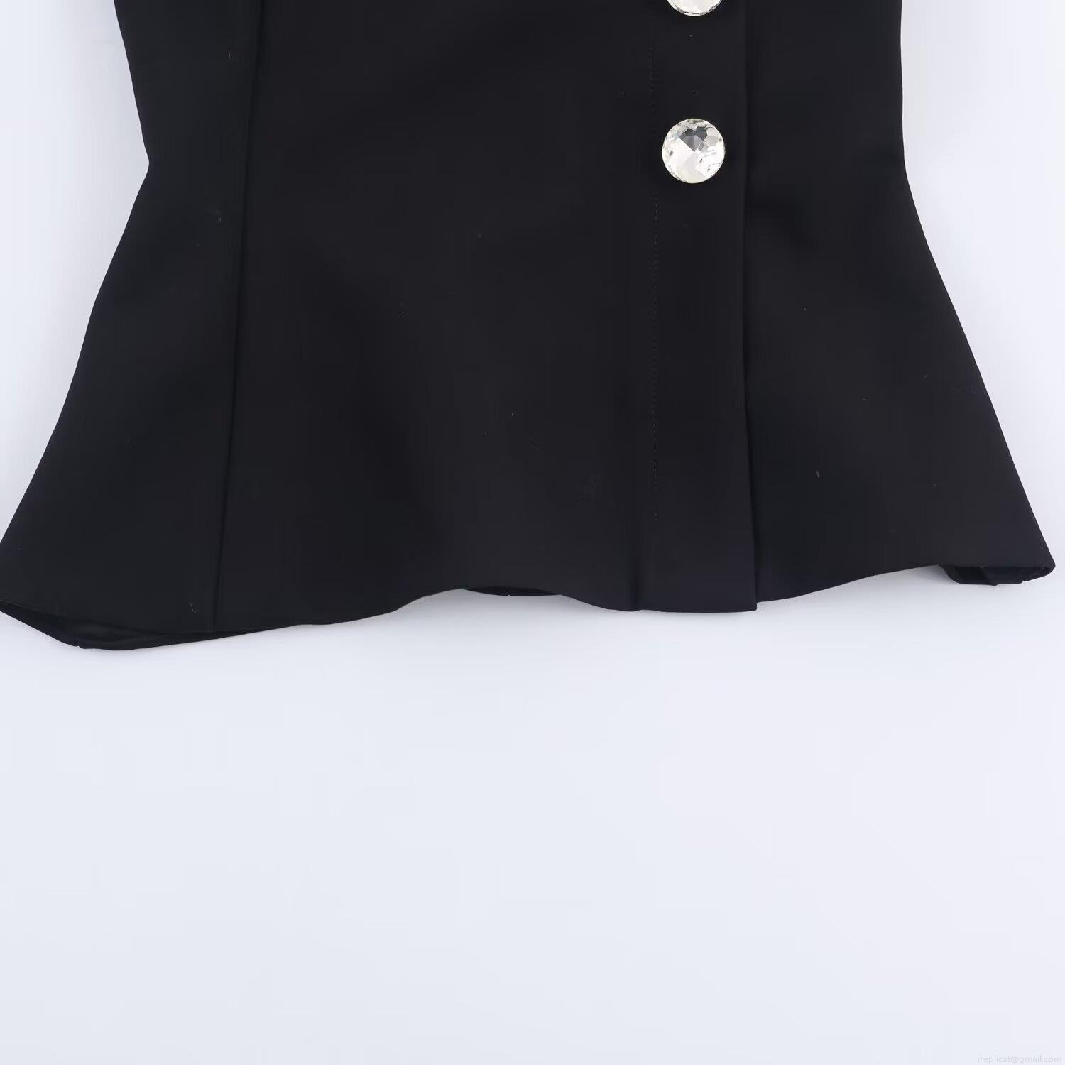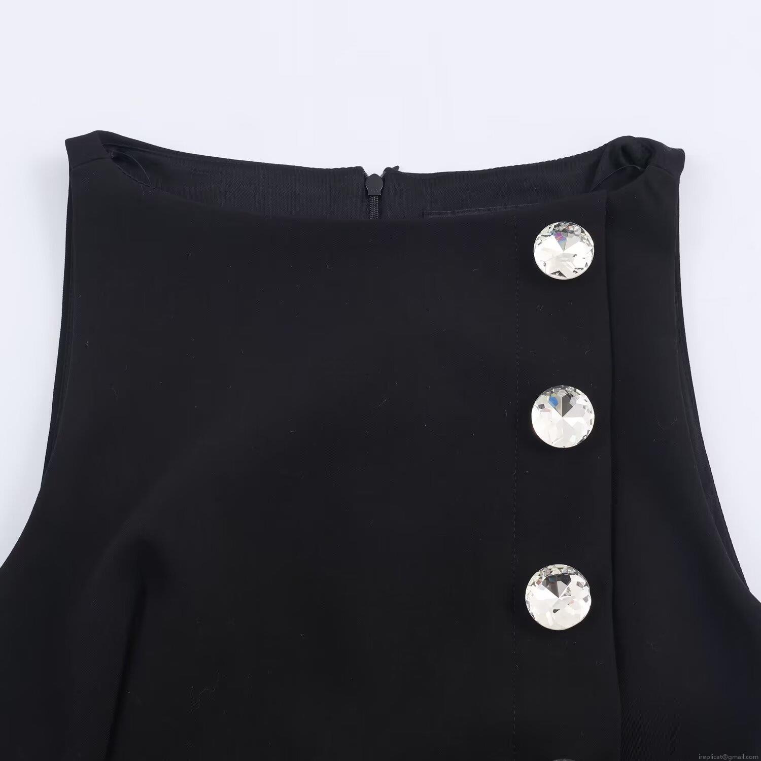 • Women Black Sleeveless Slim Fit Top With Large Rhinestone Jewel Buttons Elegant Crew Neck Party Dating Vest With Back Zipper