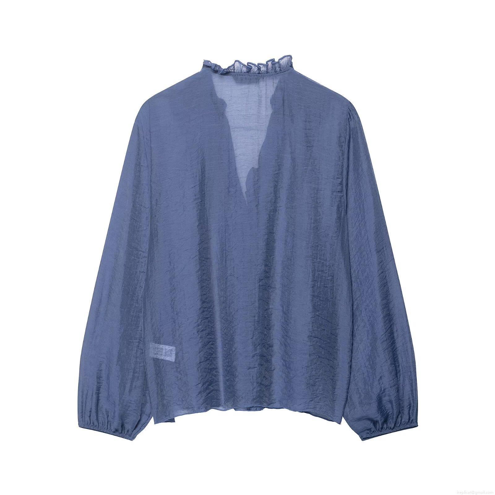 • Women Elegant Ruffle V-Neck Polyester Chiffon Shirt Long Sleeve Solid Color Lightweight Pleated Blouse For Office Daily Party Ladies Tops