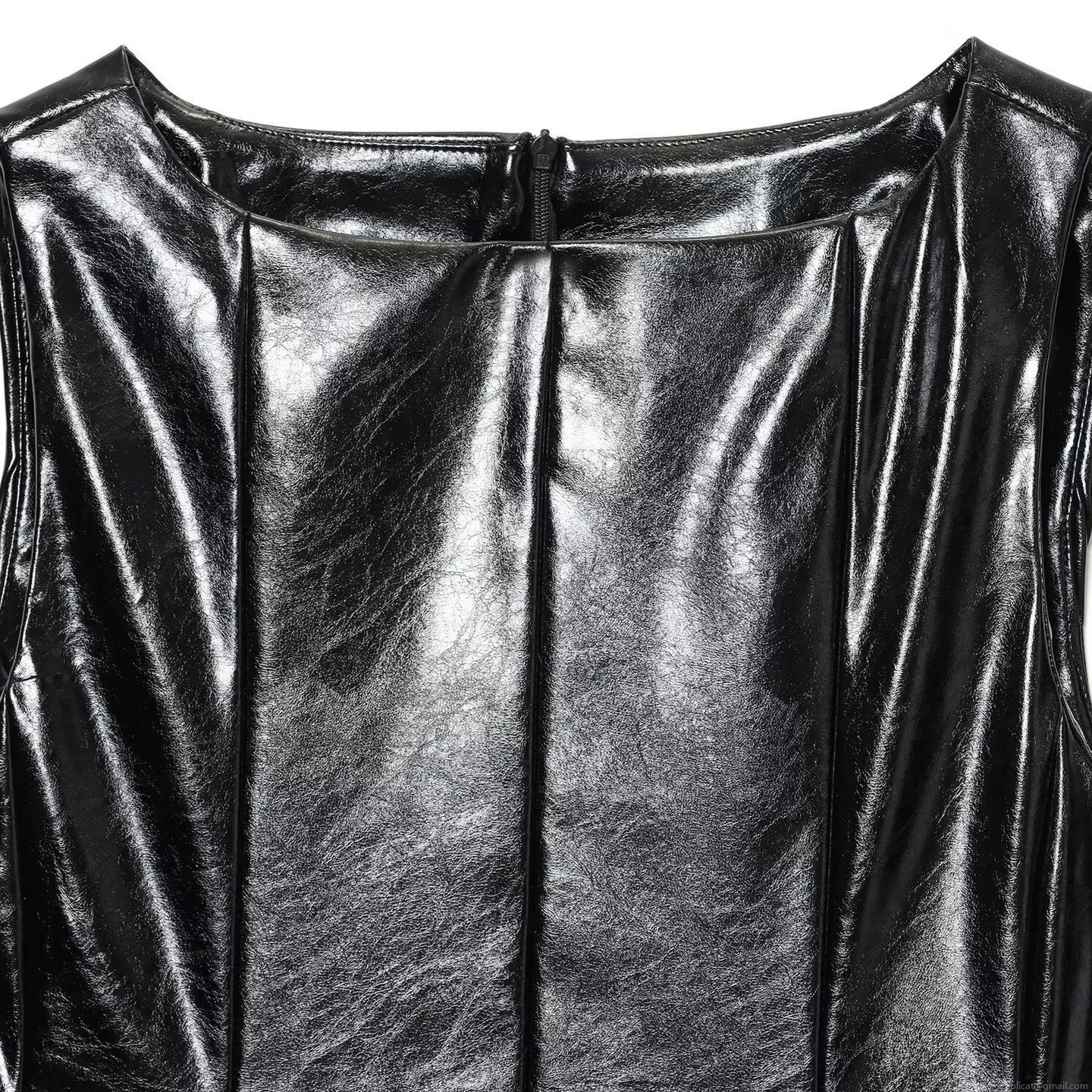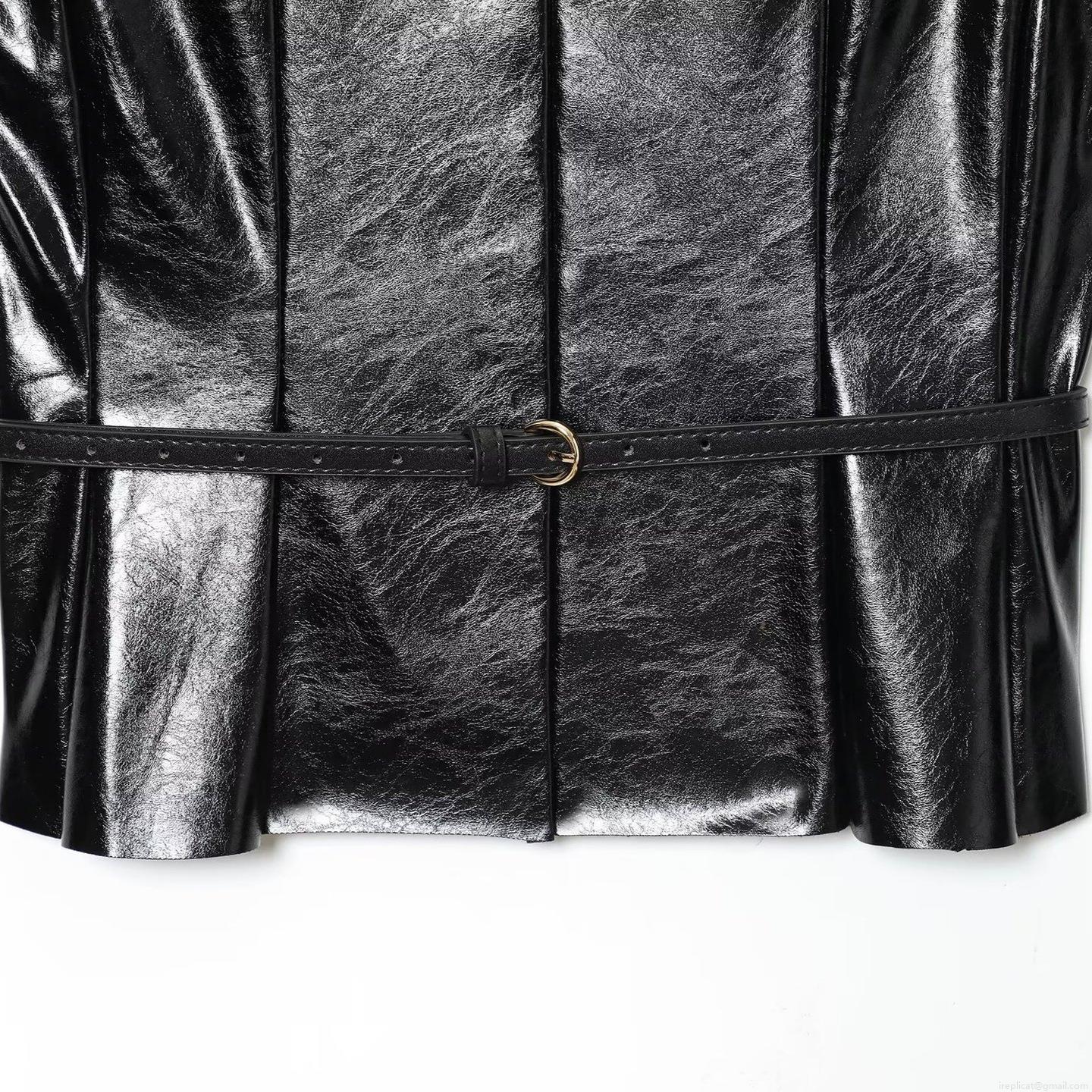 • Women Fashion Faux Leather Sleeveless Top With Belt Chic Slim Fit Round Neck Vest Autumn Shiny PU Leather Waistcoat For Ladies
