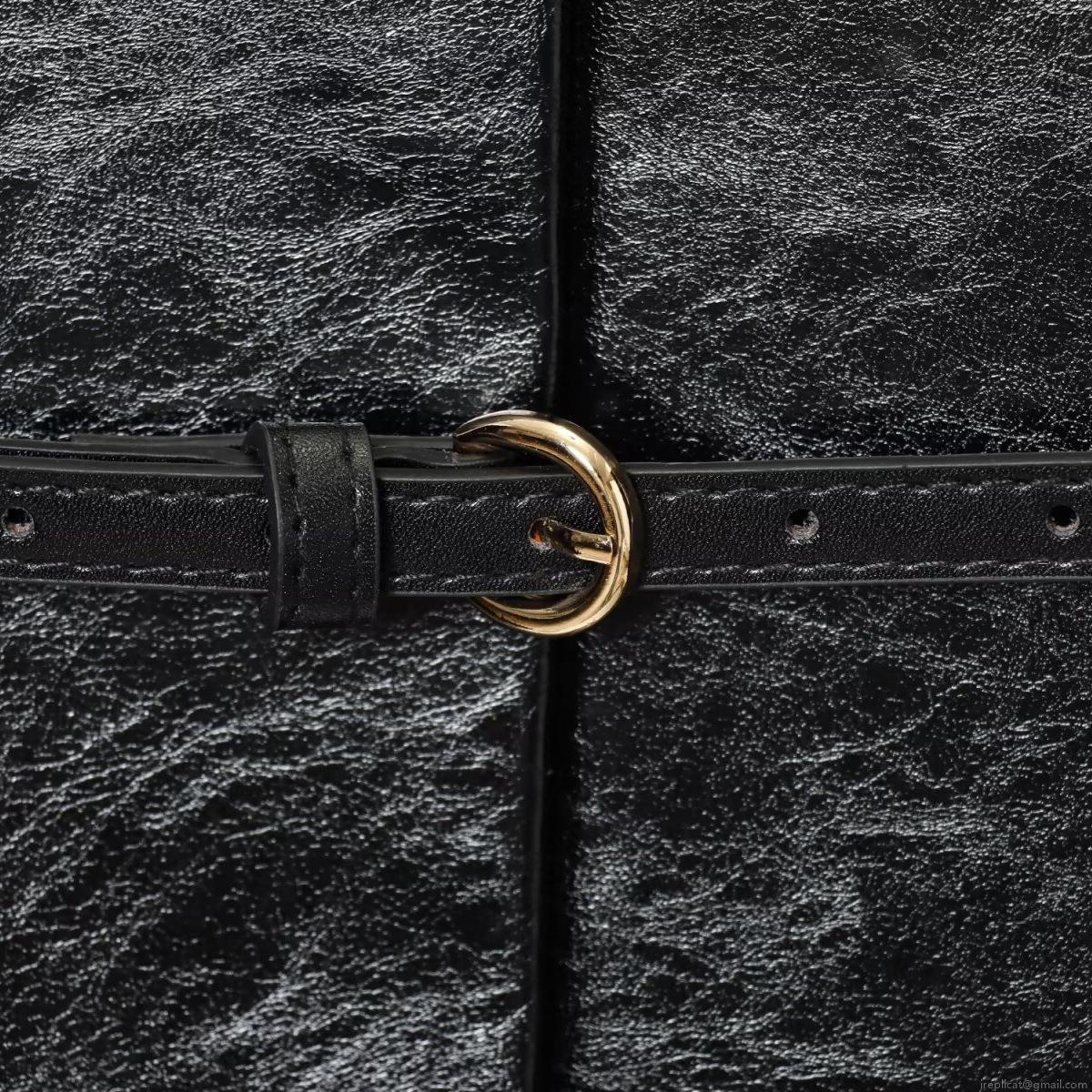 Solid Color, Glossy, Belt, Metal Buckle, Wrinkled Texture