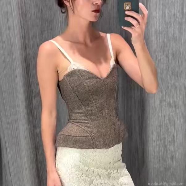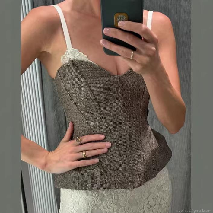 Women Sexy Corset Camisole Lace Patchwork Slim Fit French Top Vintage Brown Spiced Girl Bustier Party Clubwear