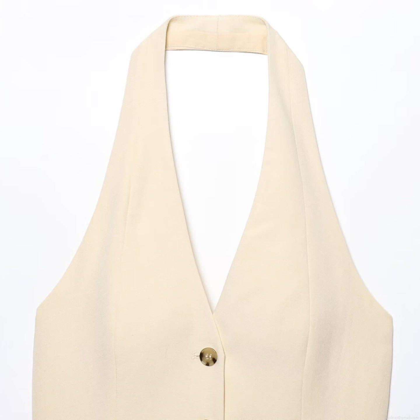 • Women Sexy Halter Neck Vest Top 100% Polyester Slim Fit Button Down Sleeveless Waistcoat For Summer Daily Party Chic Beige Commuting Vest