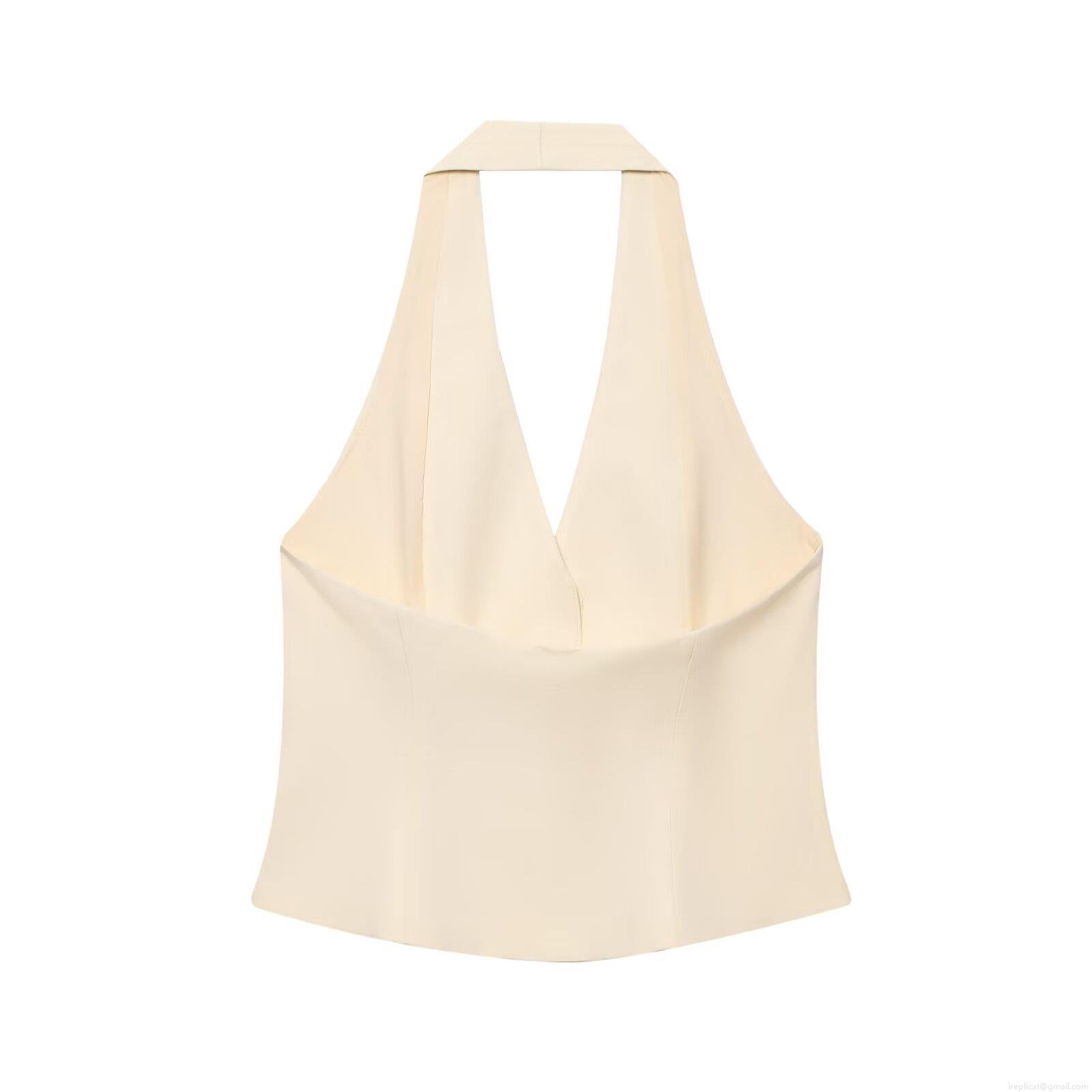 Women Sexy Halter Neck Vest Top 100% Polyester Slim Fit Button Down Sleeveless Waistcoat For Summer Daily Party Chic Beige Commuting Vest