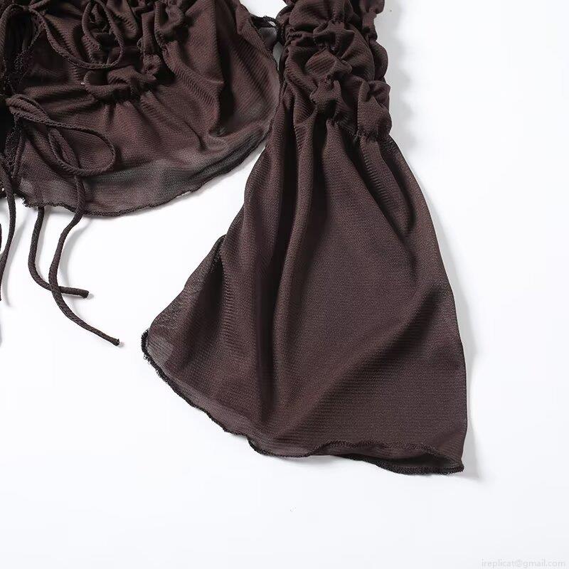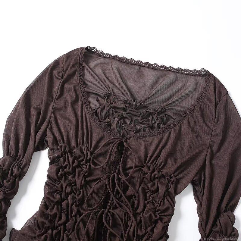 Solid Color, Pleats, Ruffles, Lace, Semi-transparent Mesh, Bell Sleeves