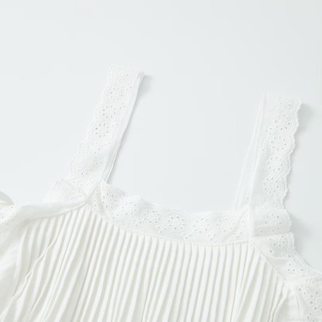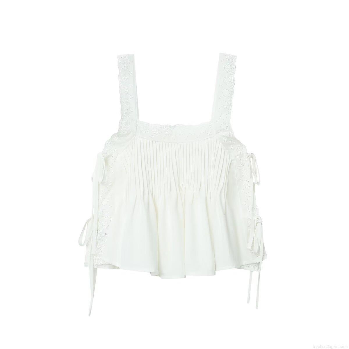 • Women Summer White Camisole Tank Top Patchwork Lace Embroidery Pleated Drawstring Slim Fit Sleeveless V Neck Sexy Streetwear For Women Daily Vacation