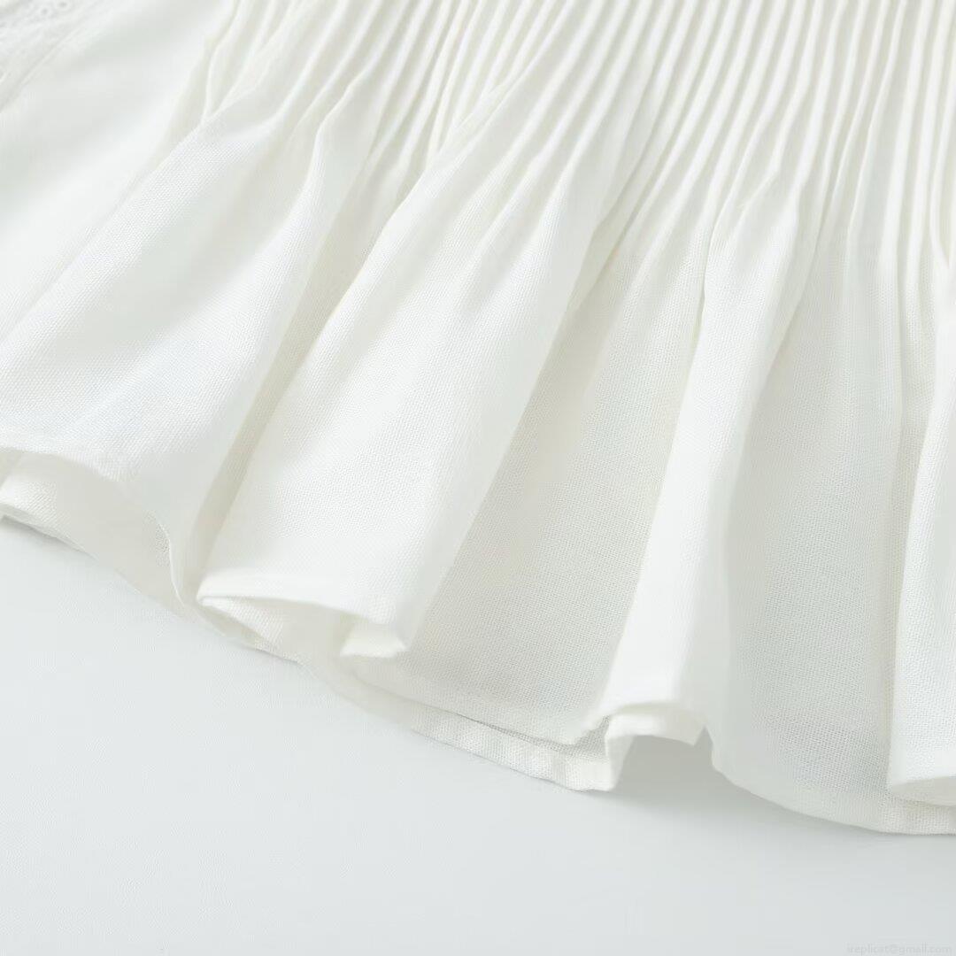 Solid Color, Splice, Lace, Embroidery, Hollow Out, Pleats, Drawstring, Floral Embroidery