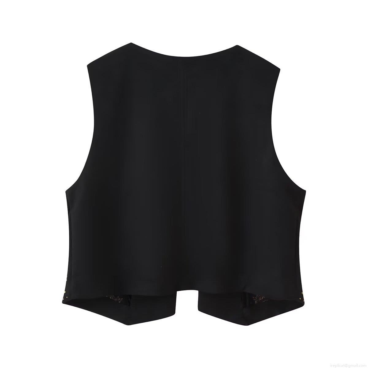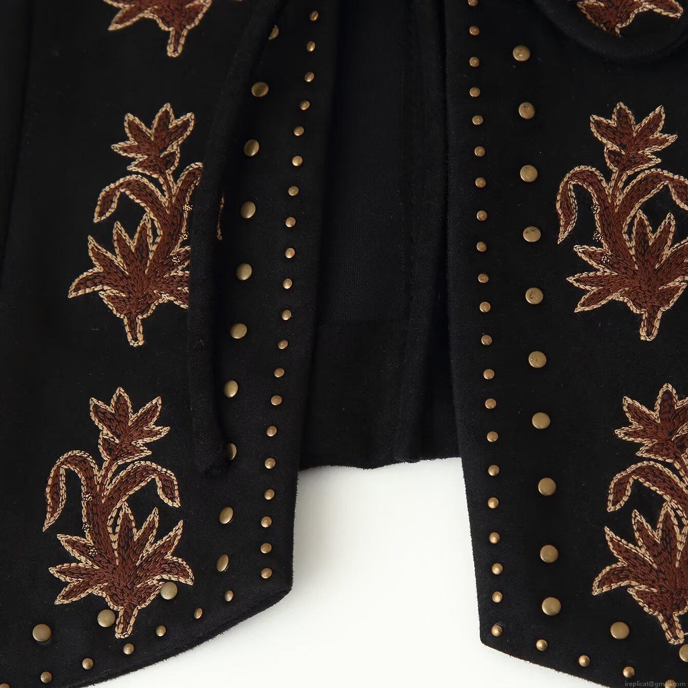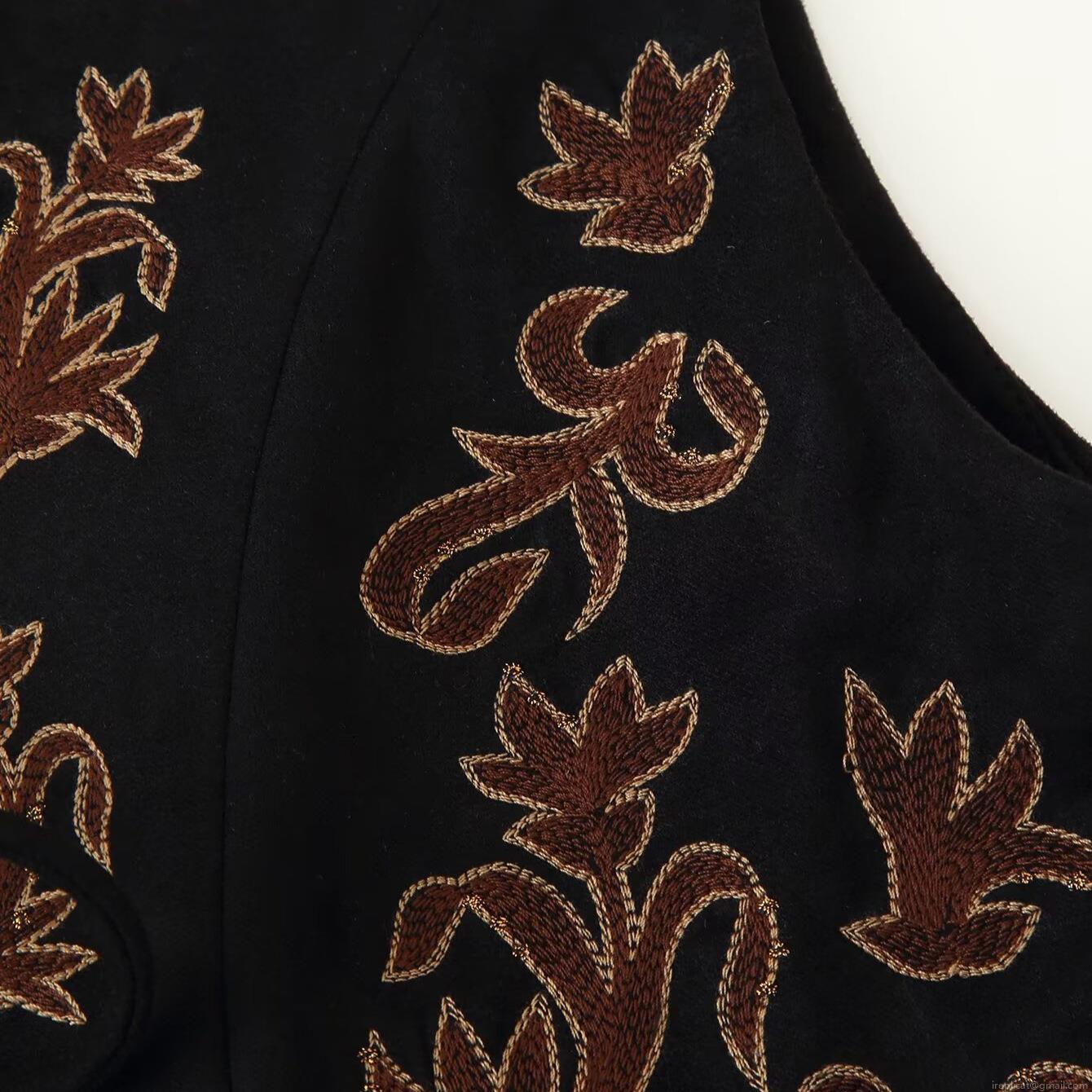 • Women's Bohemian Ethnic Style Faux Suede Vest Floral Embroidery Lace-up Short Waistcoat With Gold Rivets Retro V-Neck Sleeveless Top For Autumn Winter
