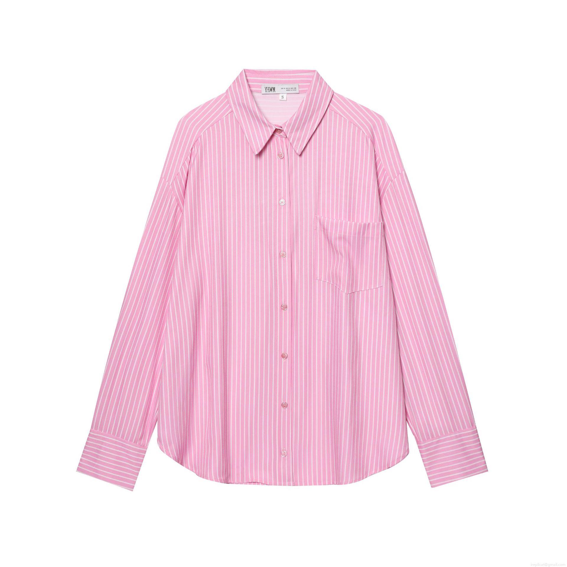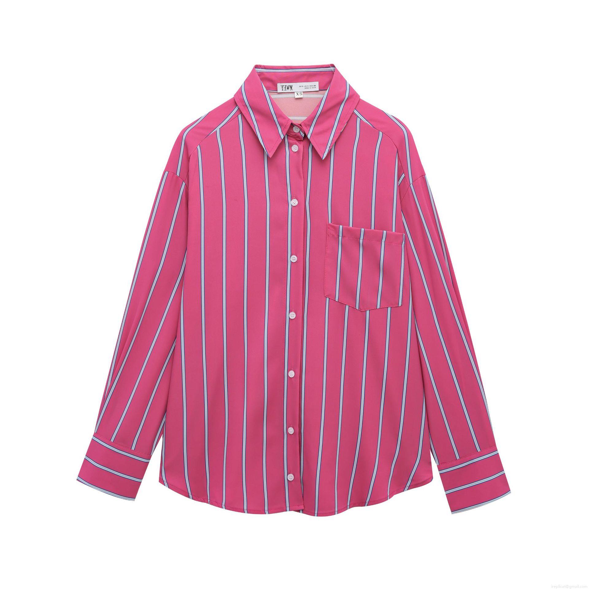 • Women's Casual Striped Long Sleeve Shirt Loose Lapel Button Down Blouse With Chest Pocket Polyester Cotton Blend Tops For Streetwear Daily Wear