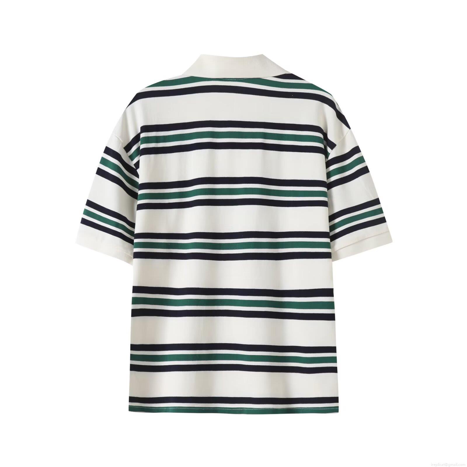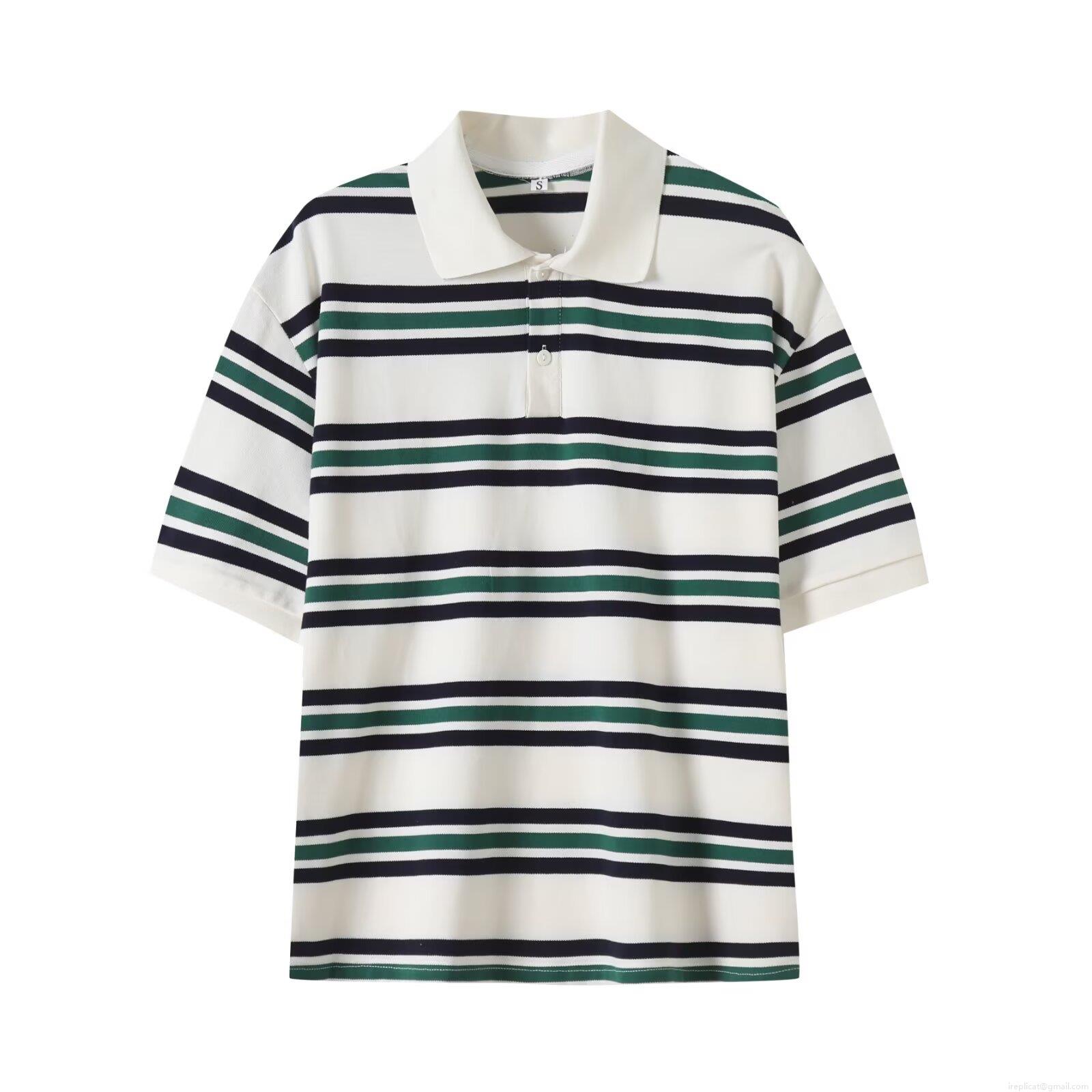 Women's Casual Striped Polo T-Shirt Lapel Neck Short Sleeve Color Block Knitted Pique Fabric Top Streetwear Fashion Summer Autumn Clothing
