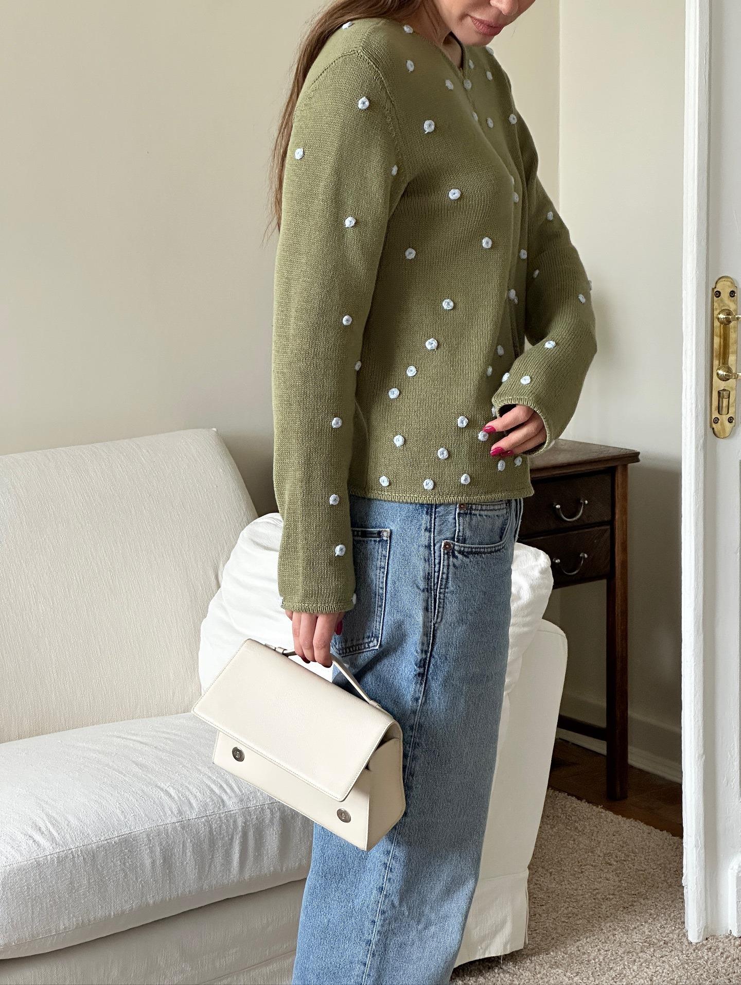 • Women's Elegant Knitted Cardigan Cotton Blend Round Neck Long Sleeve Button Down Sweater Slim Fit Outerwear With 3D Flower Applique Casual Knitwear