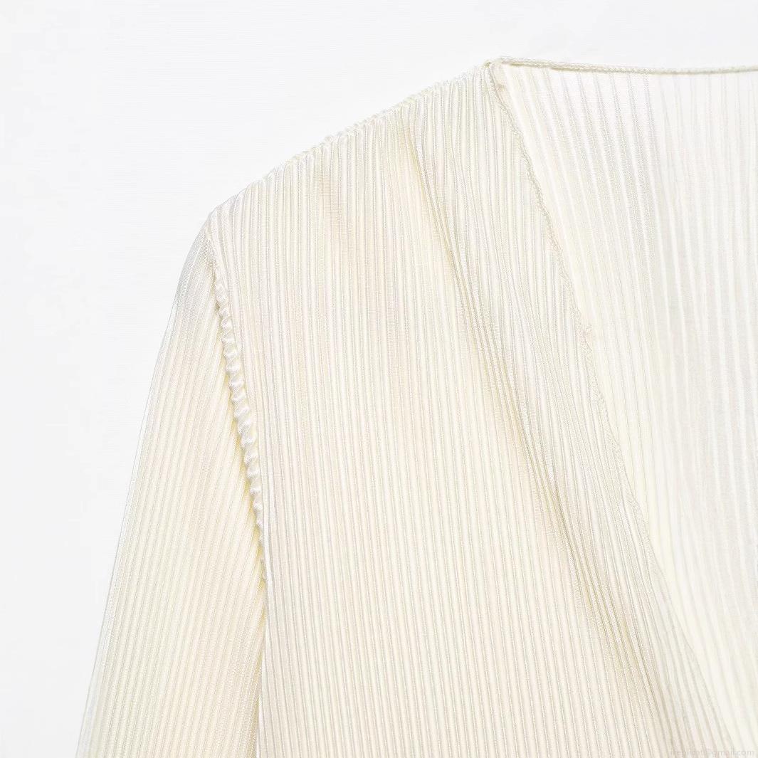 Women's Elegant Pleated V-Neck Tie-Front Blouse Long Sleeve Flare Sleeve Solid Color Polyester Top Minimalist Casual Shirt For Party Streetwear Fashion