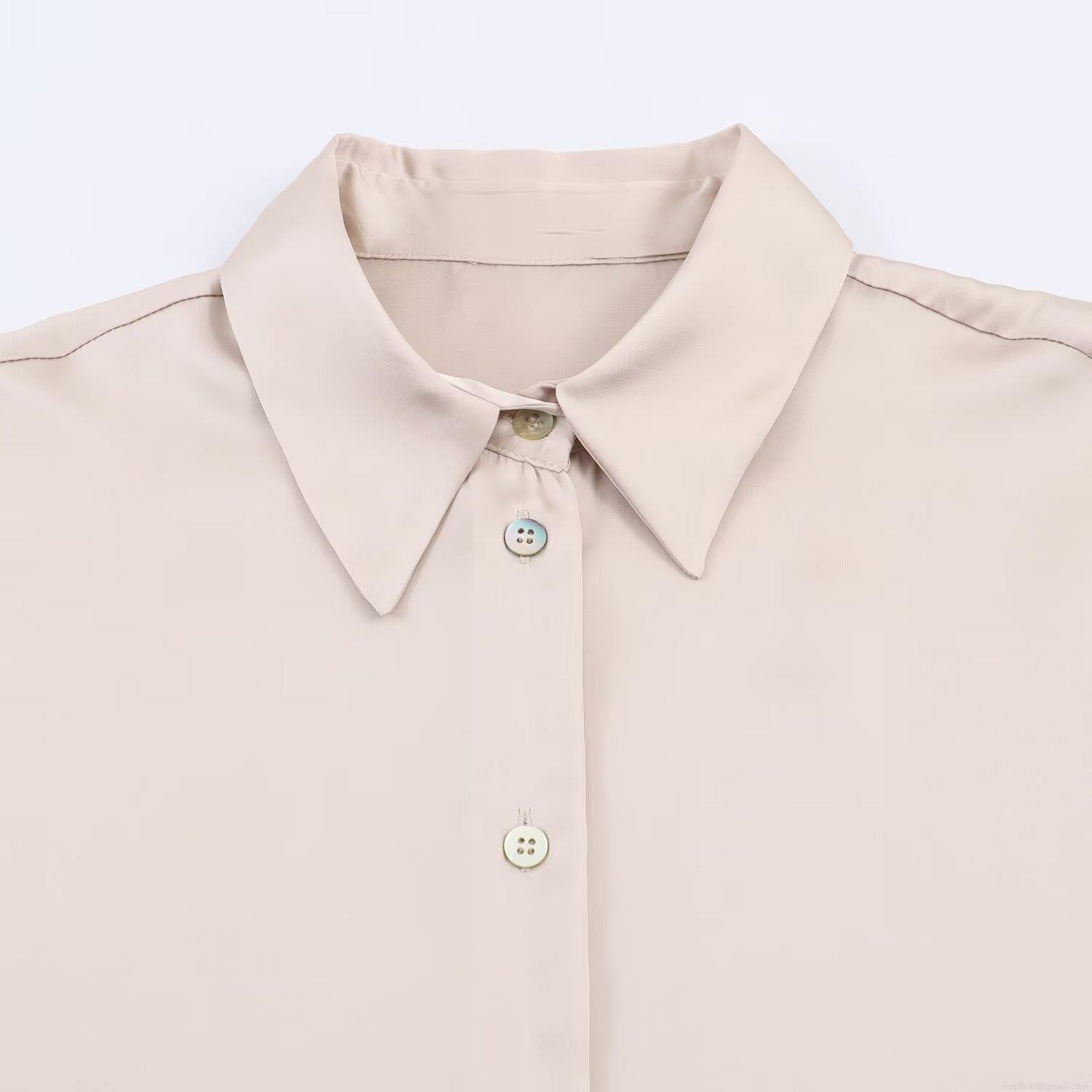 • Women's Elegant Polyester Satin Long Sleeve Shirt Asymmetric Hem Champagne Solid Blouse With Buttons Office Lady Commute Casual Fashion Tops