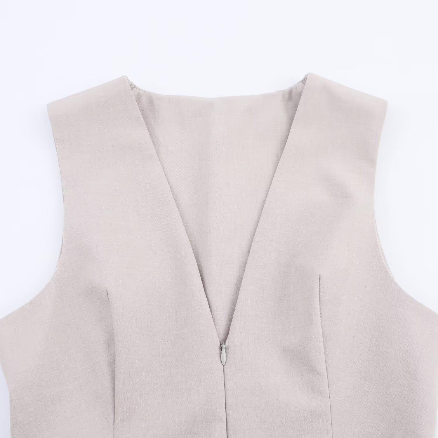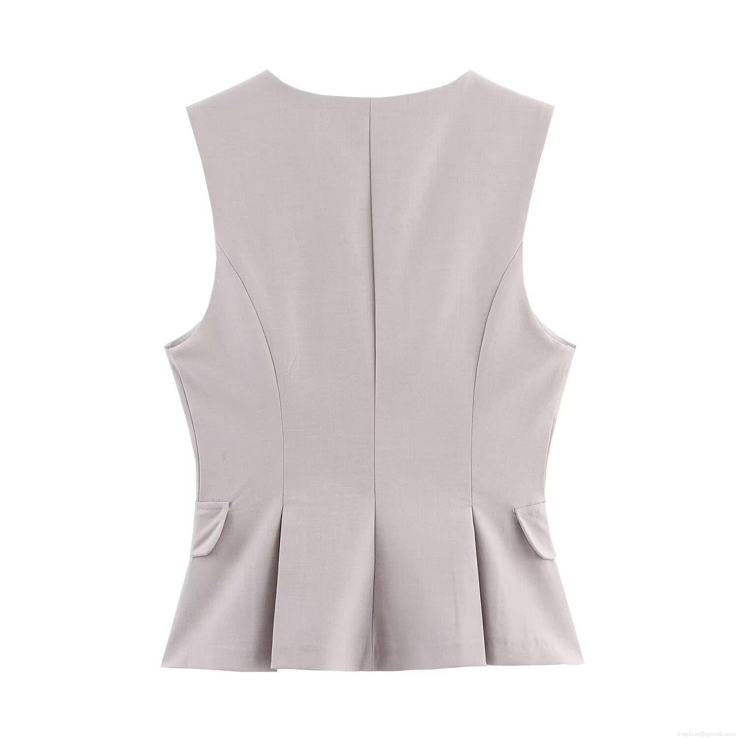 • Women's Elegant V-Neck Sleeveless Vest Peplum Hem Polyester Slim Fit Waistcoat Zipper Front Office Lady Commuter Fashion Top