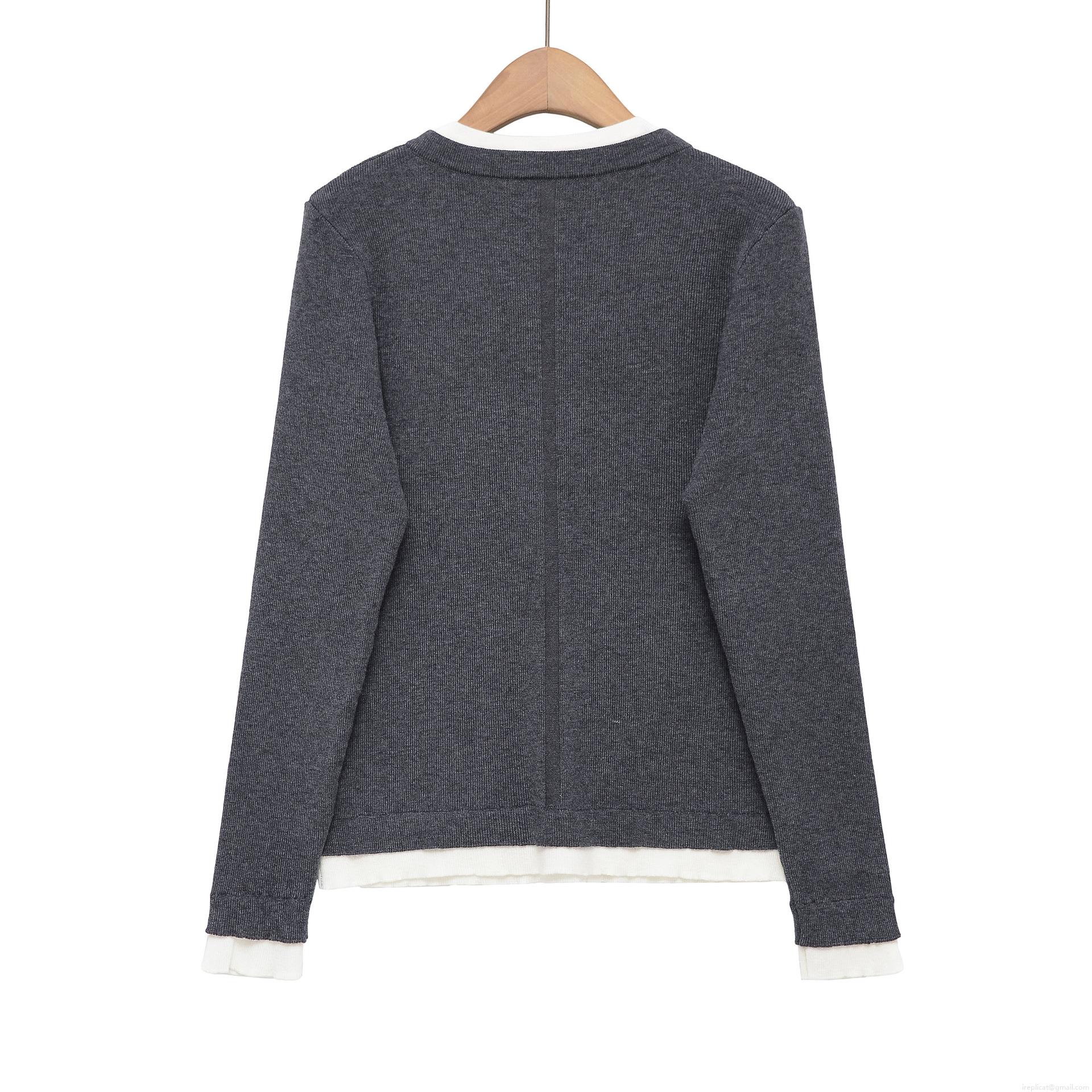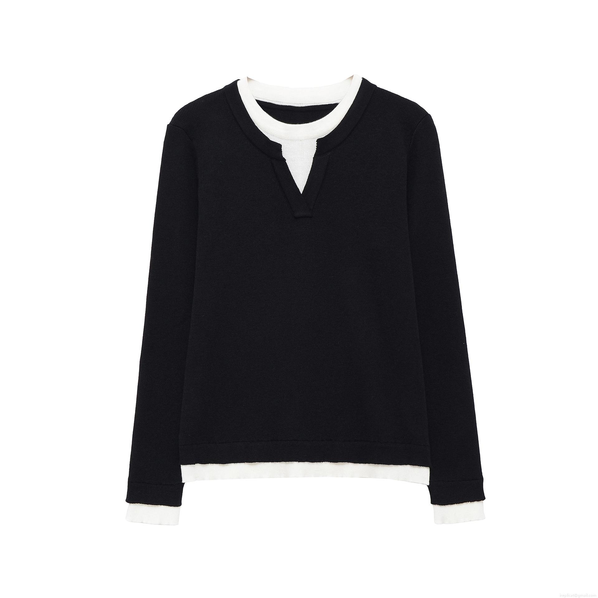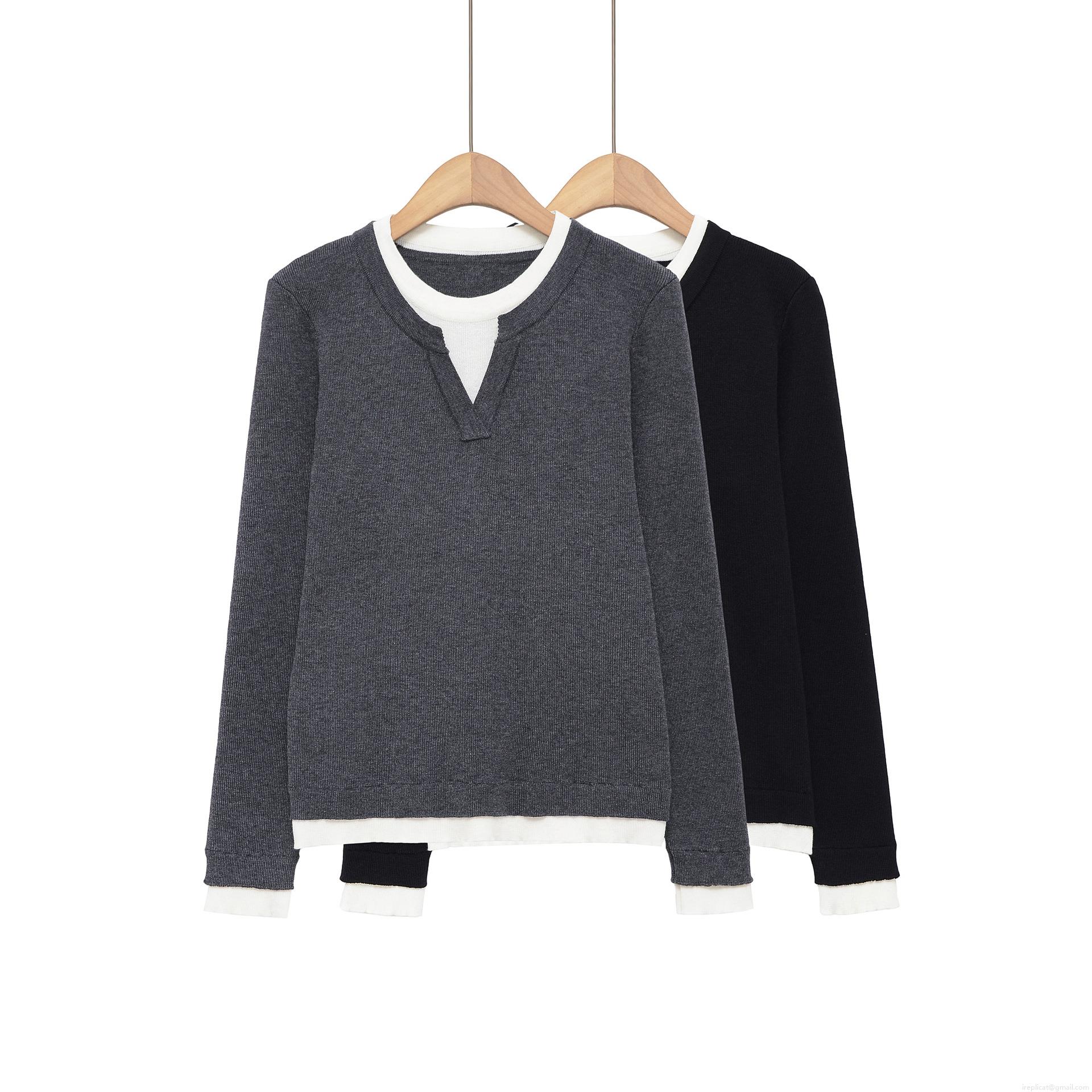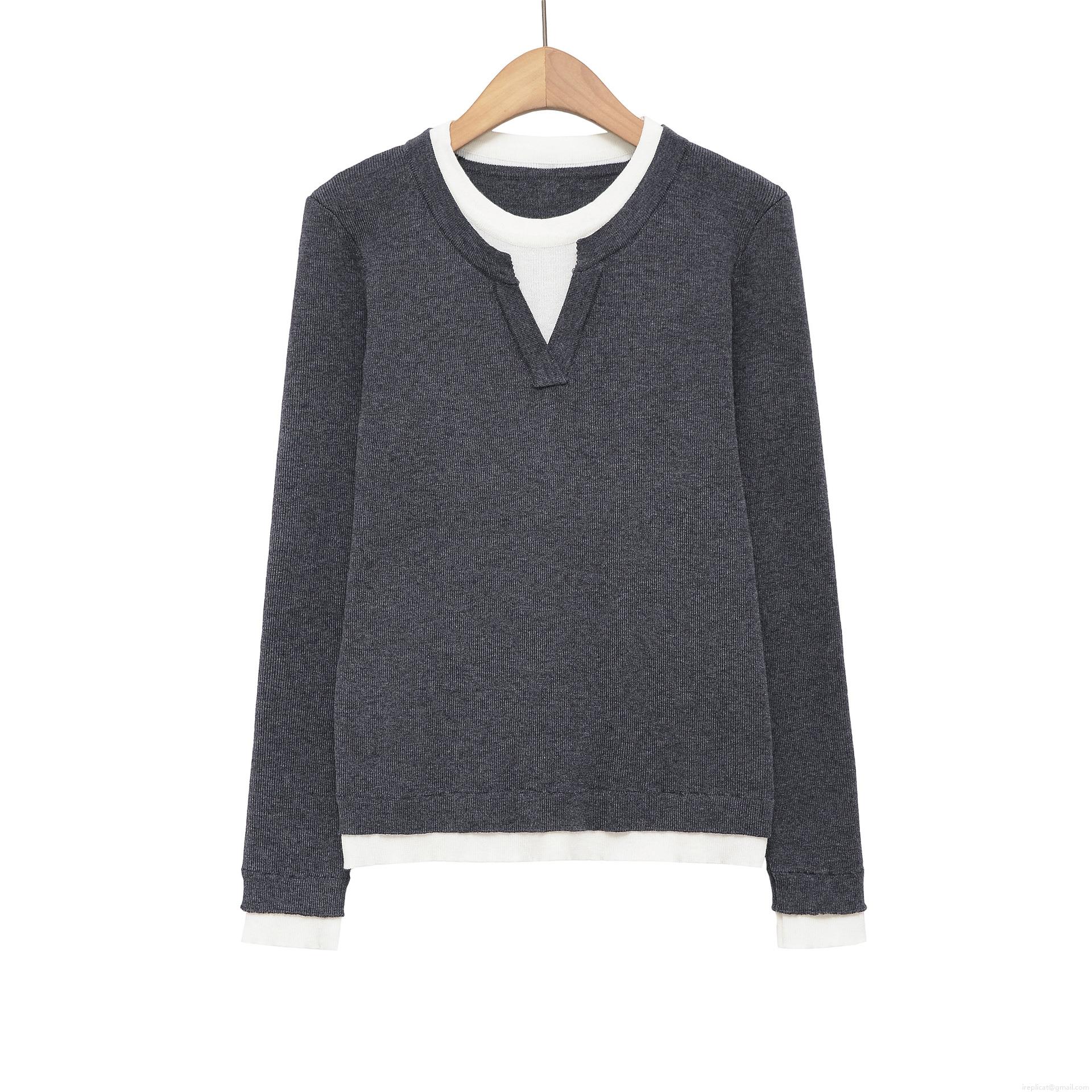 Women's Fake Two-Piece T-Shirt Long Sleeve Polyester Color Contrast Stitching Loose Pullover Top Streetwear Style Casual Autumn Wear