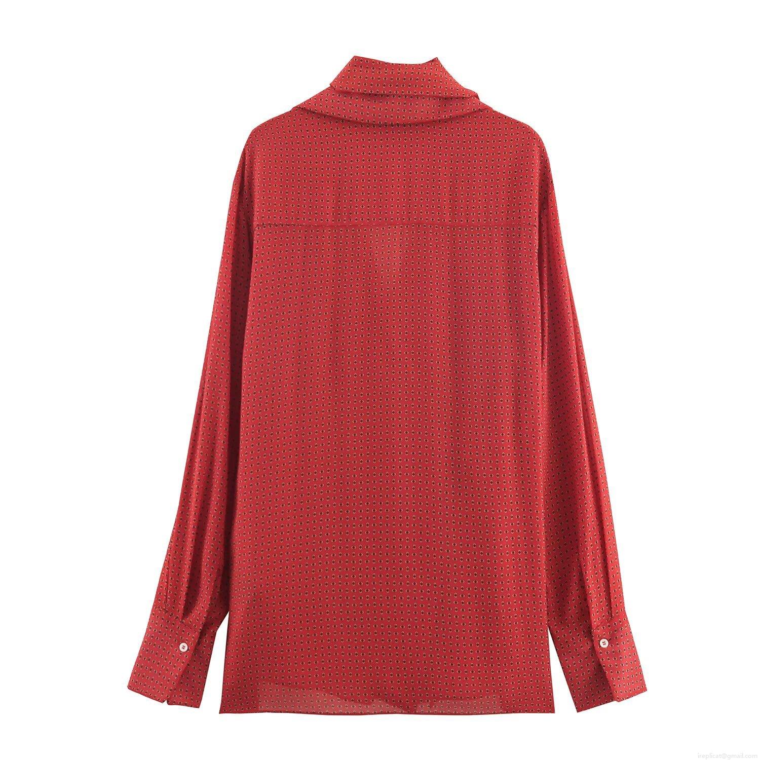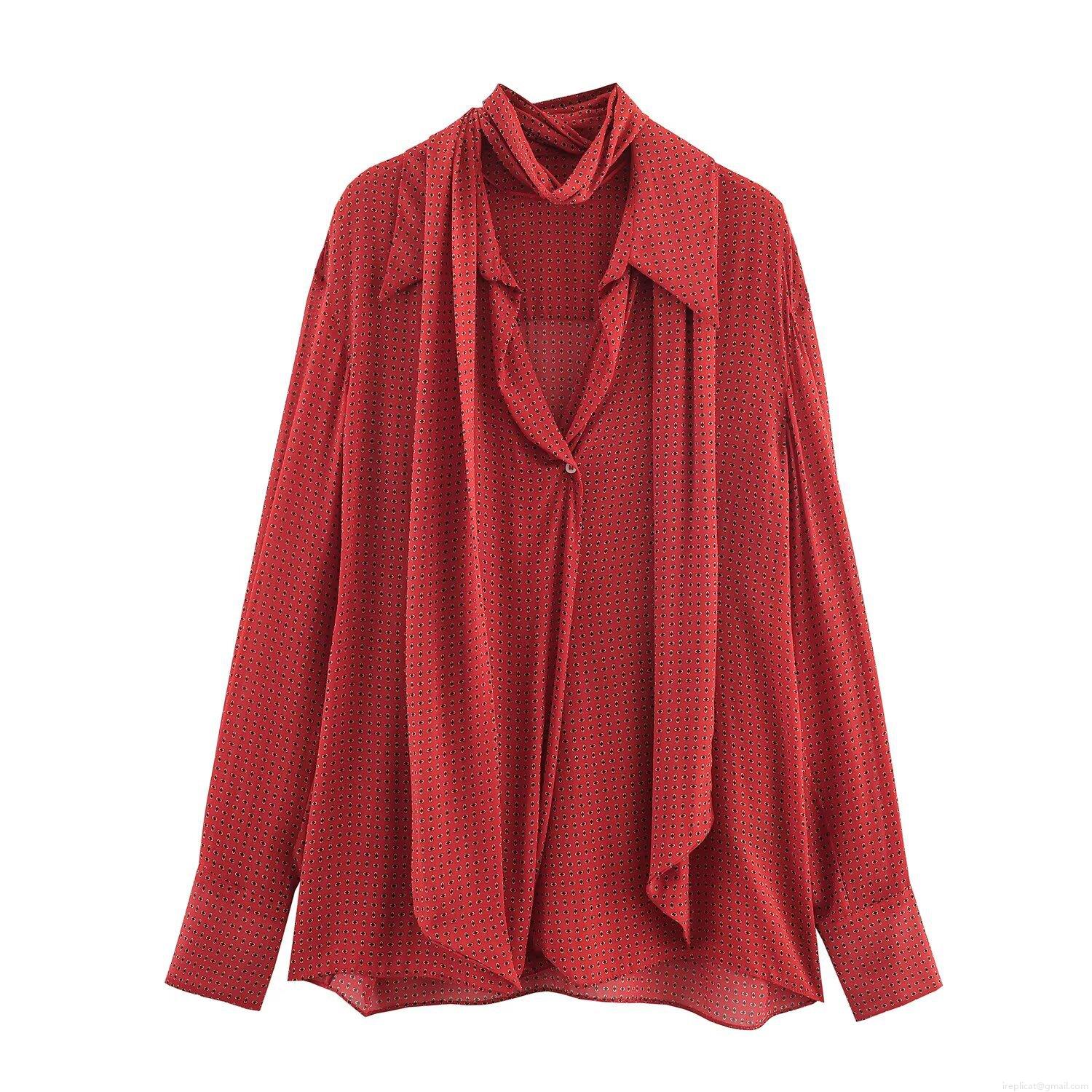 Women's Fashion Polka Dot Print Long Sleeve Blouse Elegant Tie Bow Neck Chiffon Shirt Casual Office Lady Tops Pullover