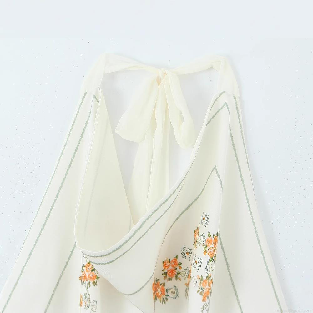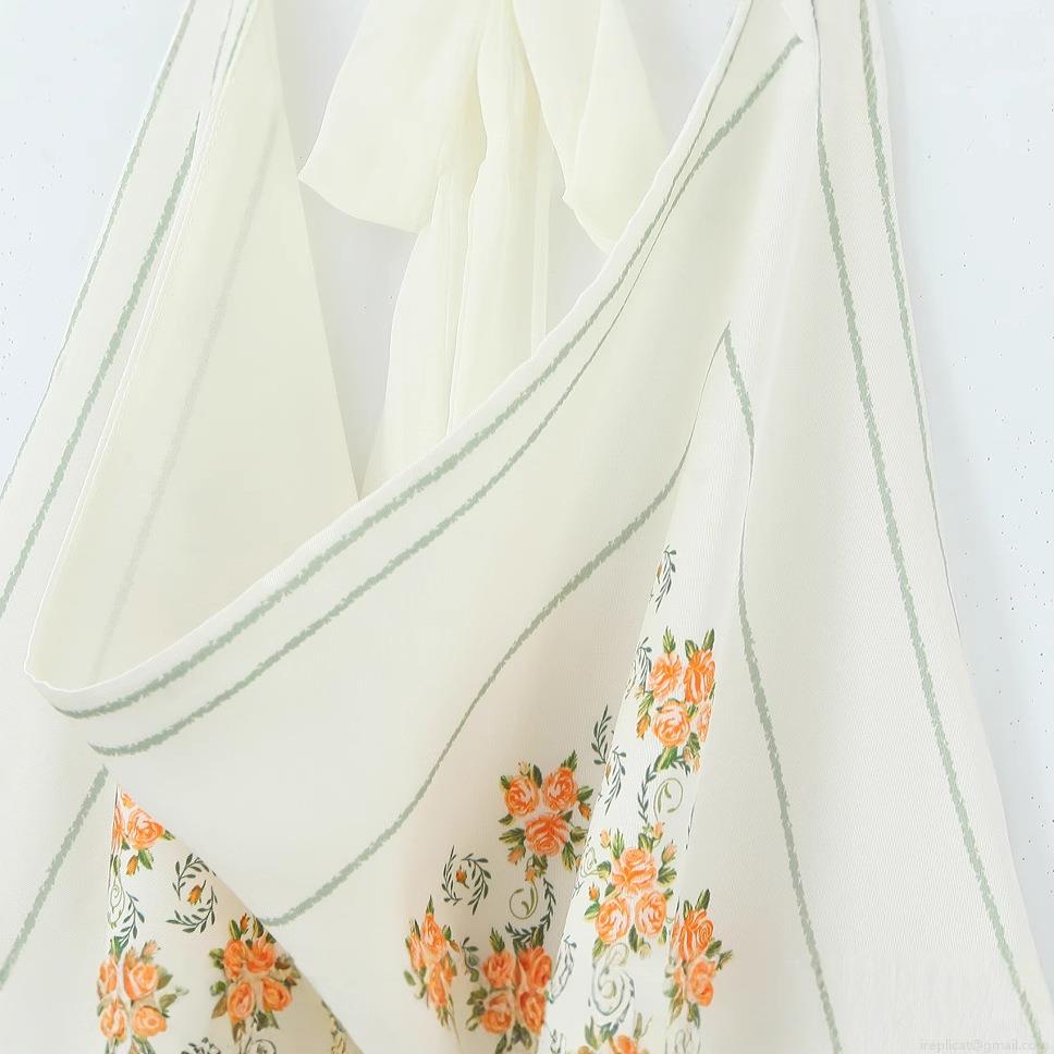 Floral Pattern, Rose, Neckband, Lace, Backless, Striped Border