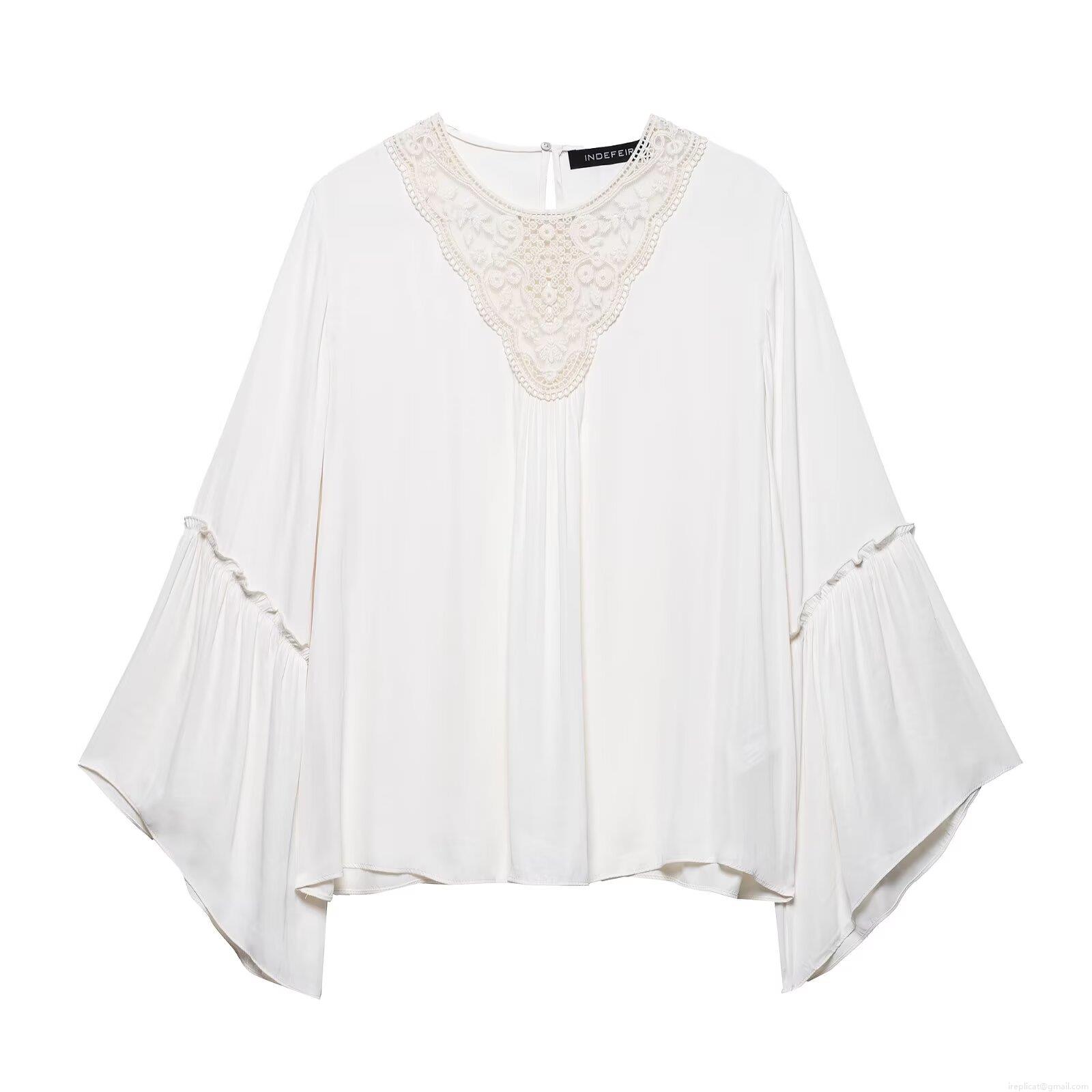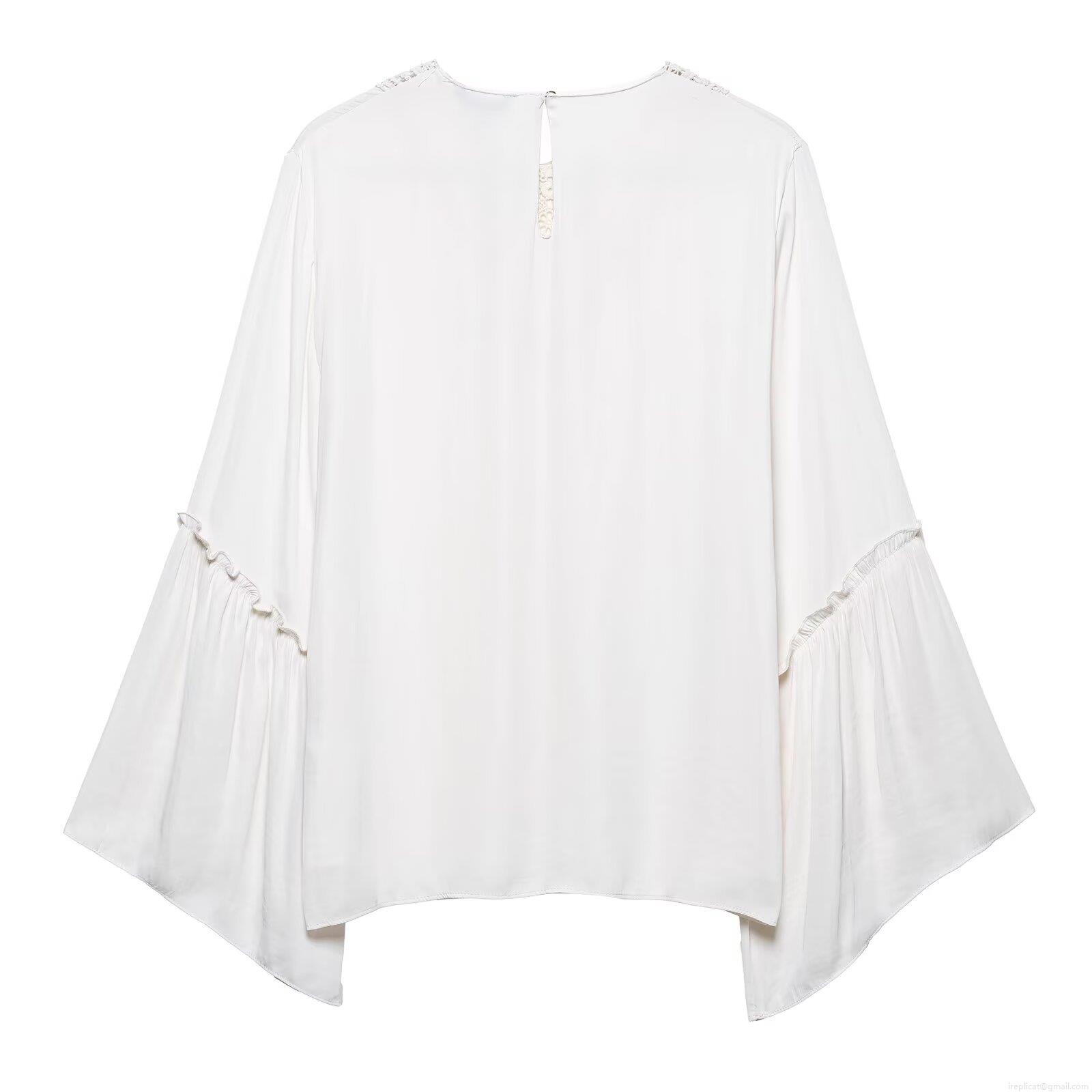 • Women's French Fashion Elegant Lace Patchwork Blouse Pleated Bell Sleeve Long Sleeve Solid Color Pullover Chiffon Like Polyester Top For Dating Party