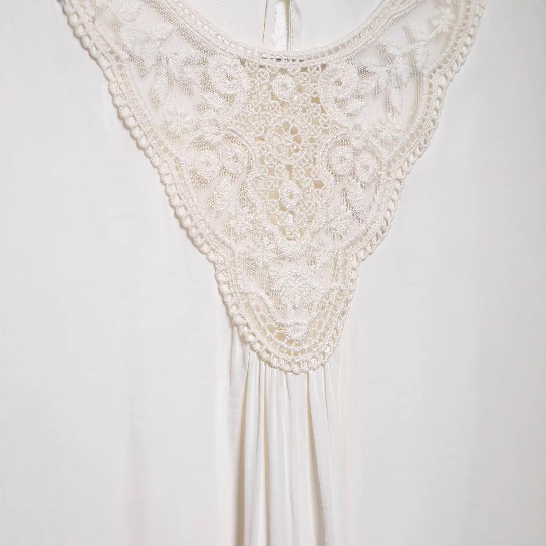 Solid Color, Hollow Out, Lace Patchwork, Accordion Pleats, 3d Embroidery, Bell Sleeves