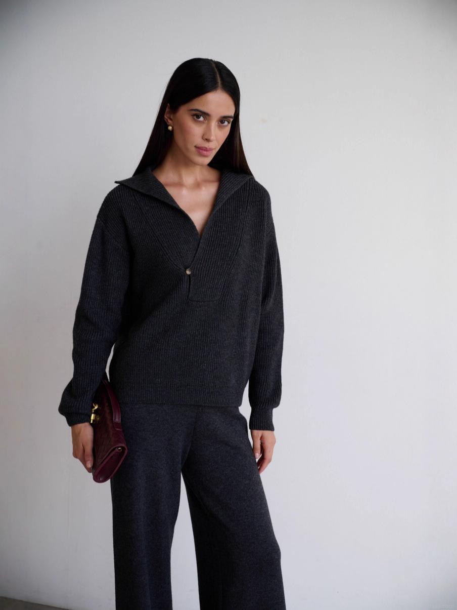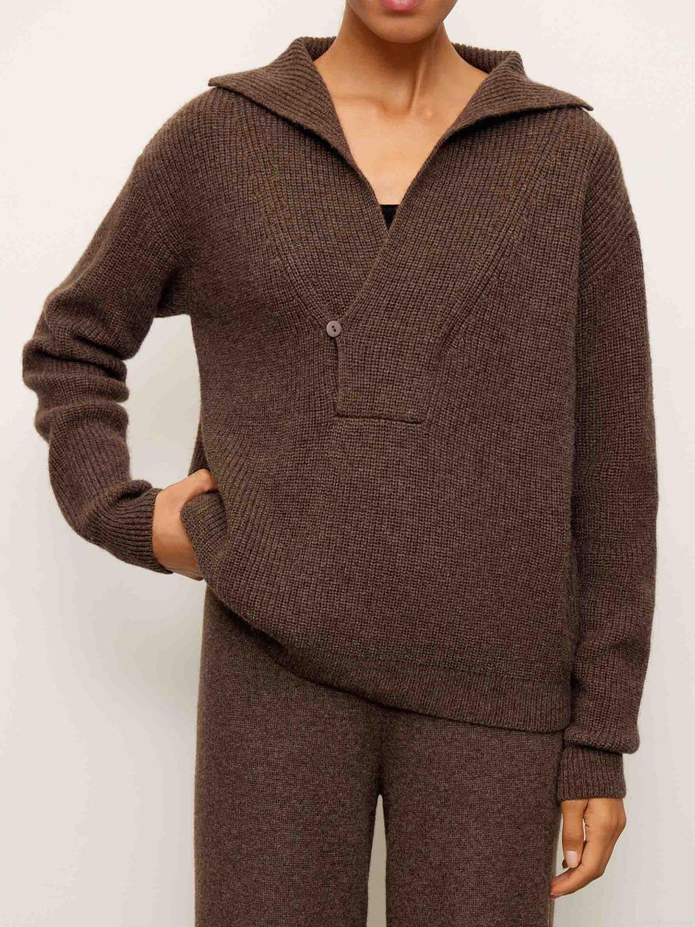 • Women's Half Zip Knitted Sweater Cotton Blend Casual Loose Pullover Top For Autumn Winter Commute Office Minimalist Solid Color Ribbed Jumper