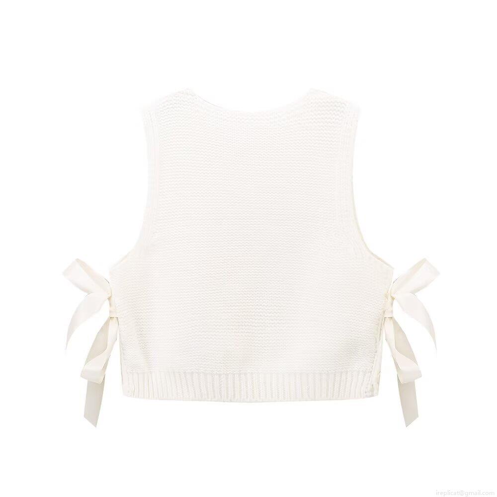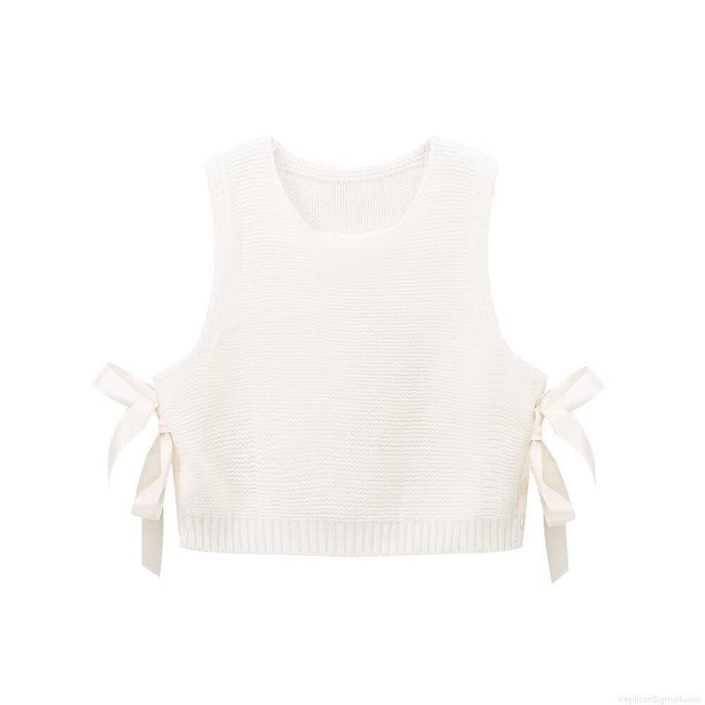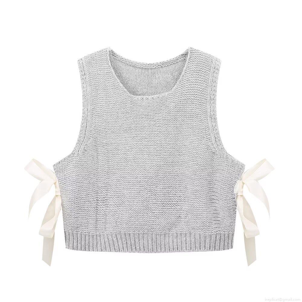 • Women's Knit Crop Vest Side Tie Bow U-Neck Sleeveless Tank Top Solid Color Polyester Knitted Pullover Streetwear Outerwear For Women