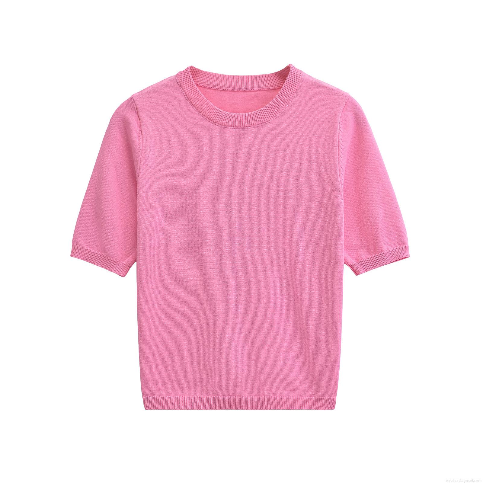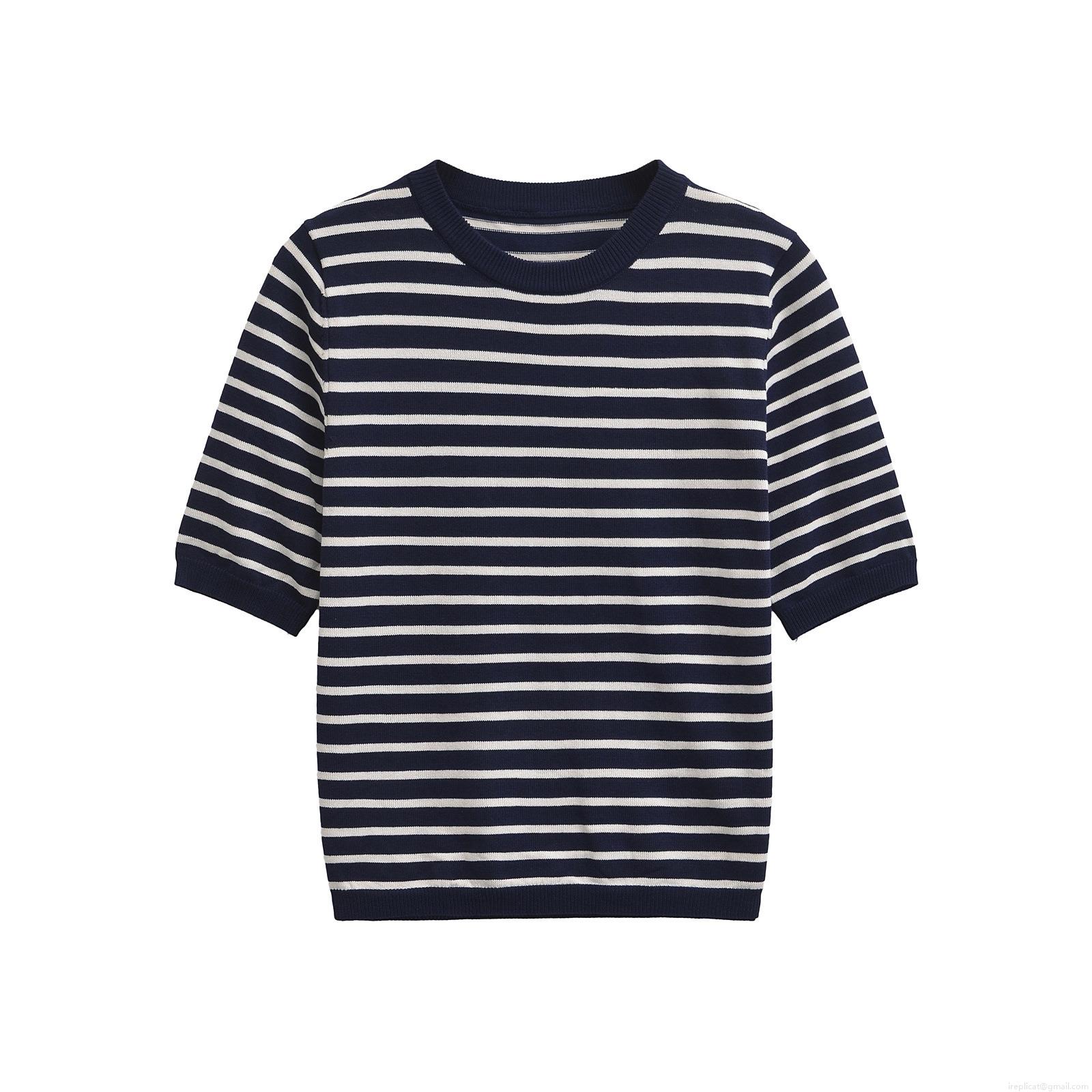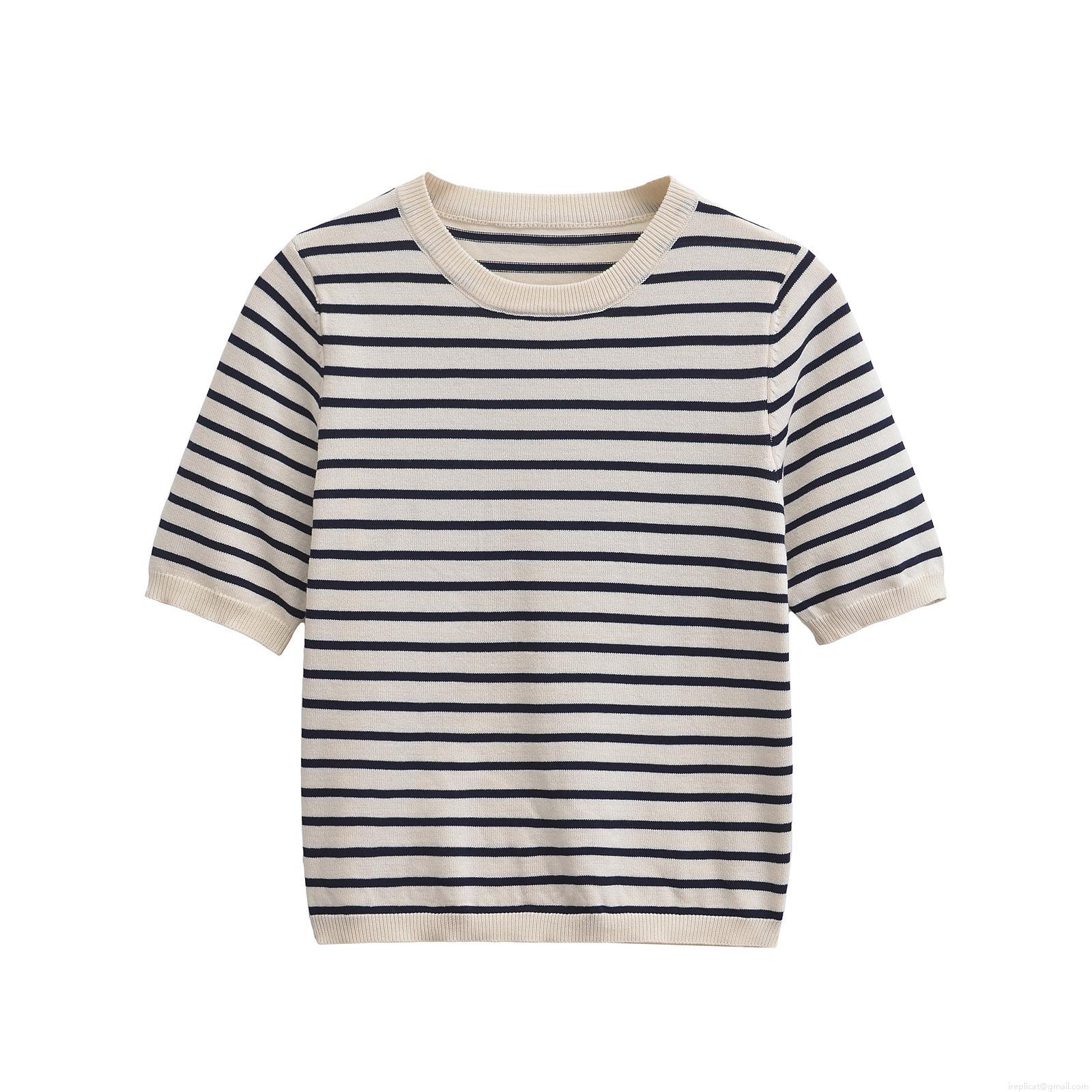 • Women's Knit Short Sleeve T-Shirt Striped Round Neck Casual Summer Tee Lightweight Slim Fit Patchwork Pullover Top Streetwear Fashion Basic Knitwear for Ladies