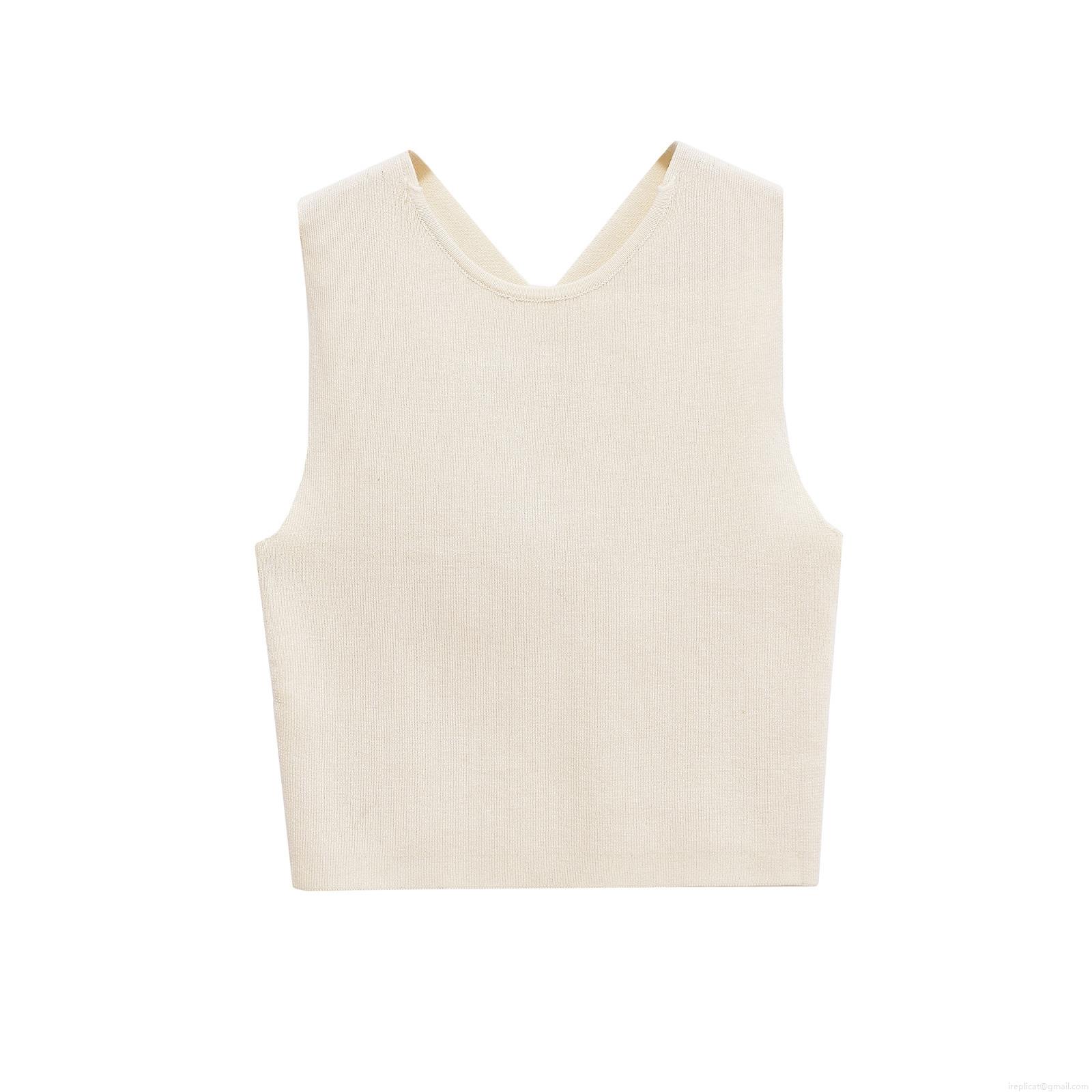Women's Knit Tank Top Back Slit Round Neck Sleeveless Polyester Summer Casual Minimalist Camisole Knitwear For Ladies Daily Wear