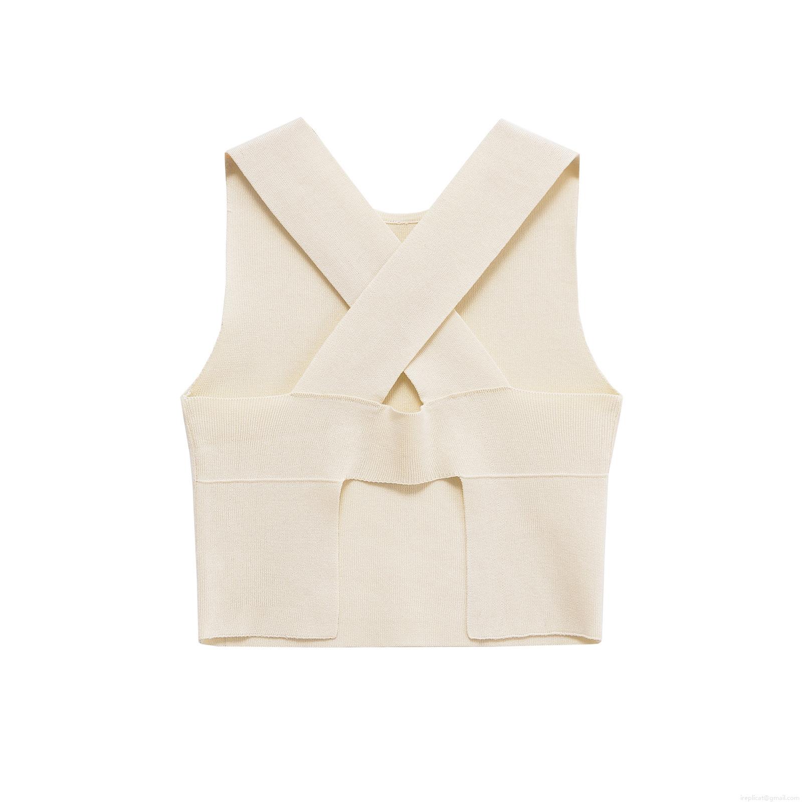 • Women's Knit Tank Top Back Slit Round Neck Sleeveless Polyester Summer Casual Minimalist Camisole Knitwear For Ladies Daily Wear
