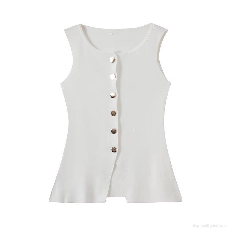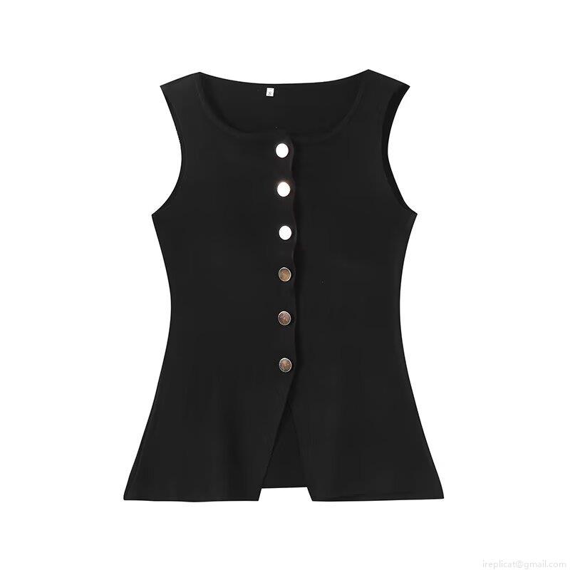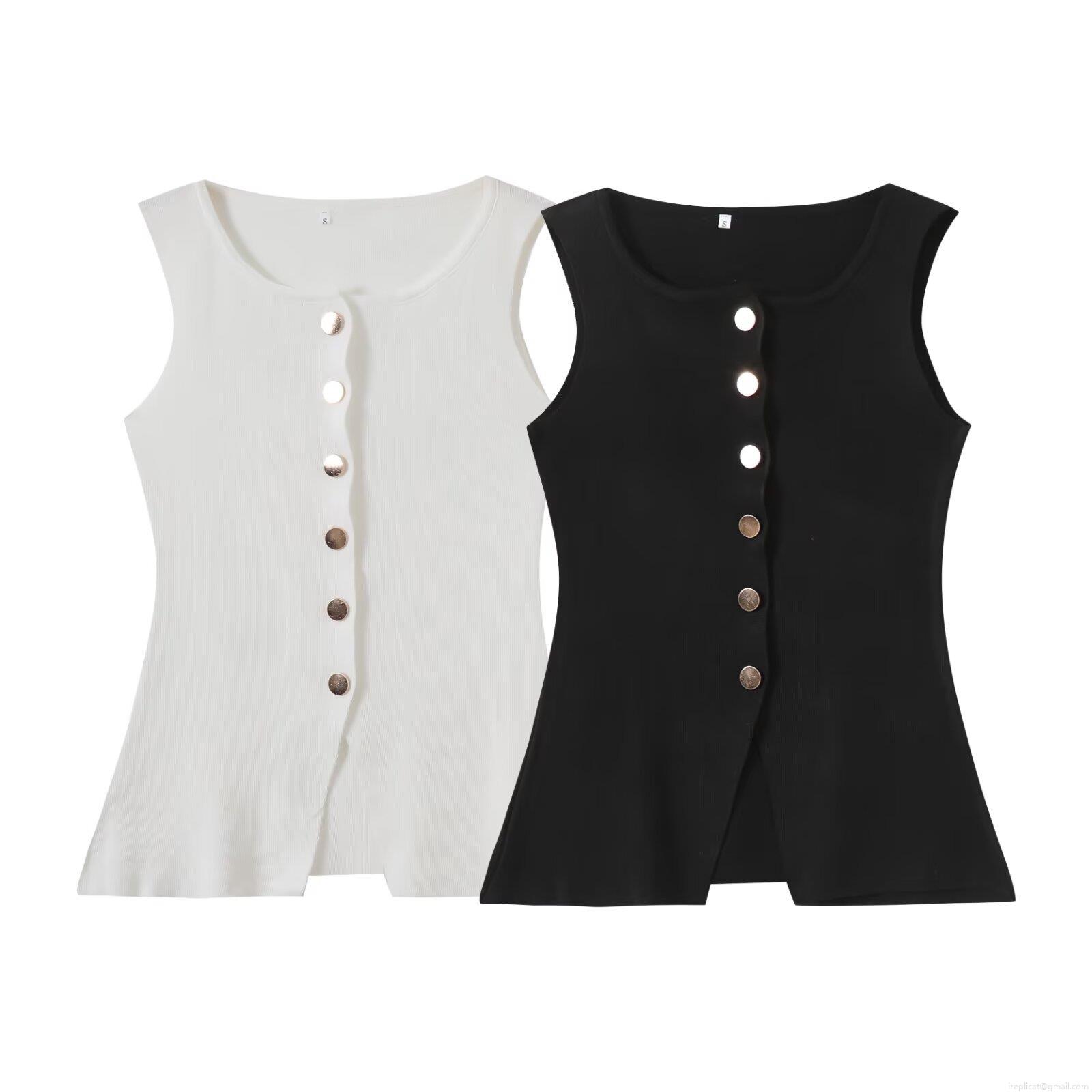 • Women's Knitted Vest Tank Top Round Neck Sleeveless Ribbed Knit Button Down Slim Fit Camisole Casual Streetwear Top For Women